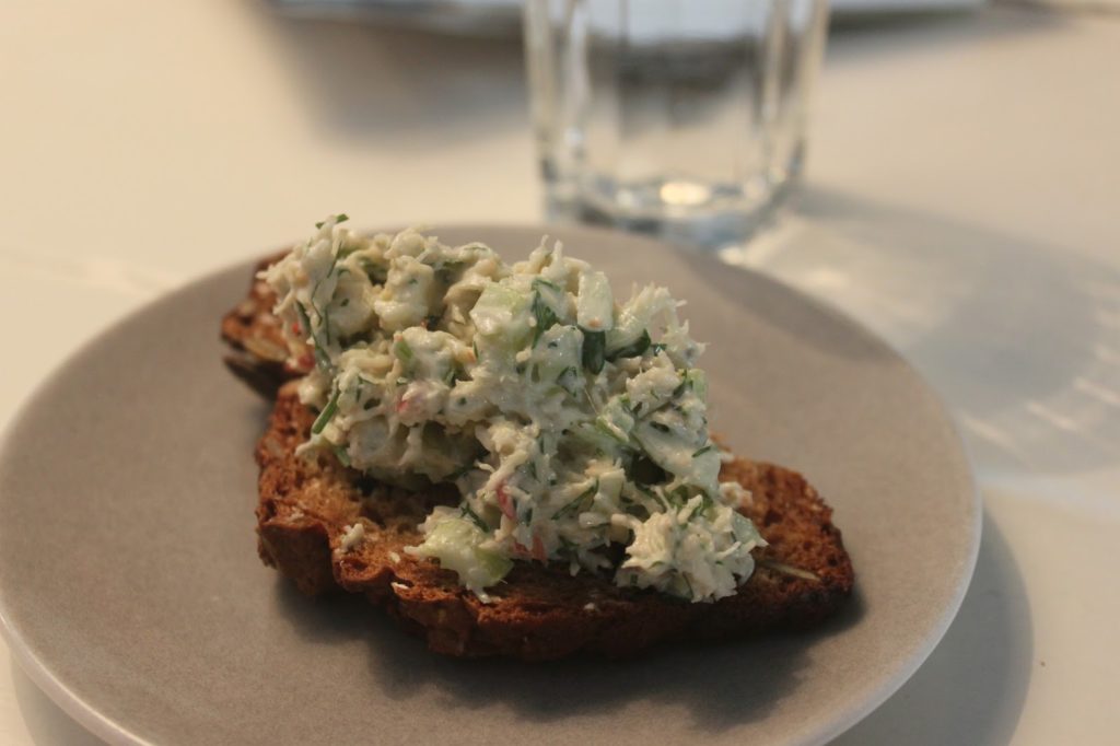 On me fait goûter des tartines de salade de crabe ultra fraiche. Comment résister??