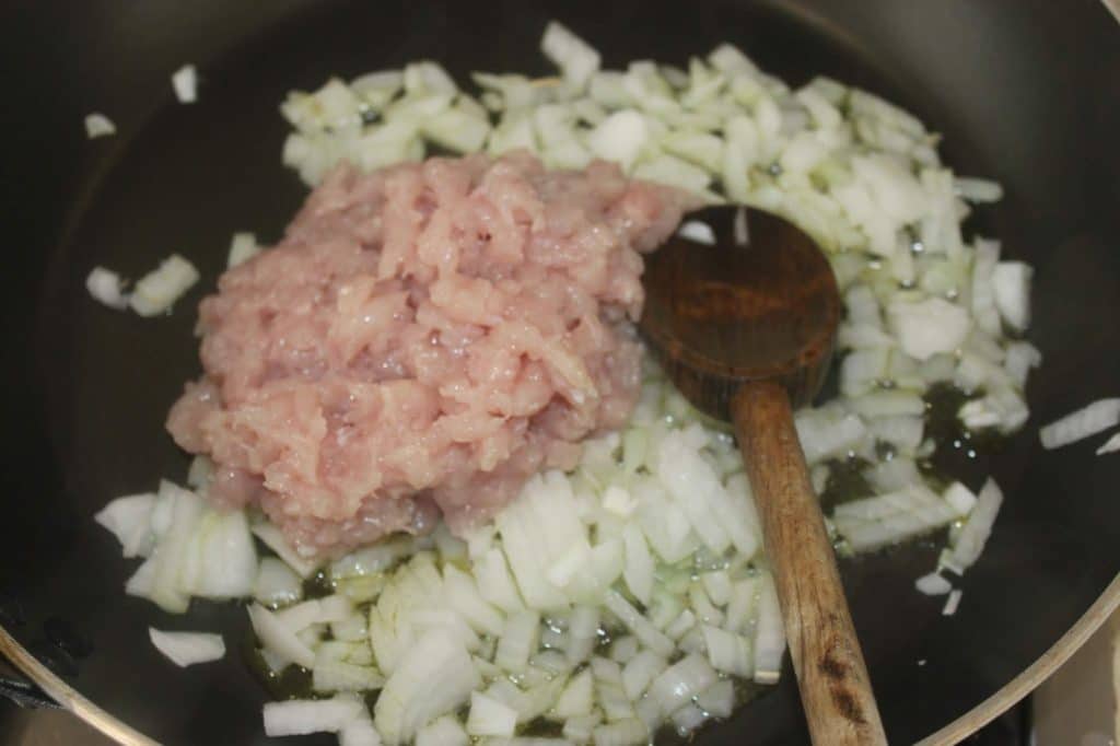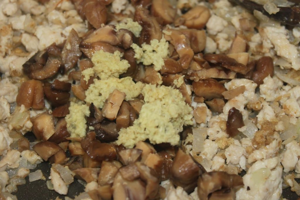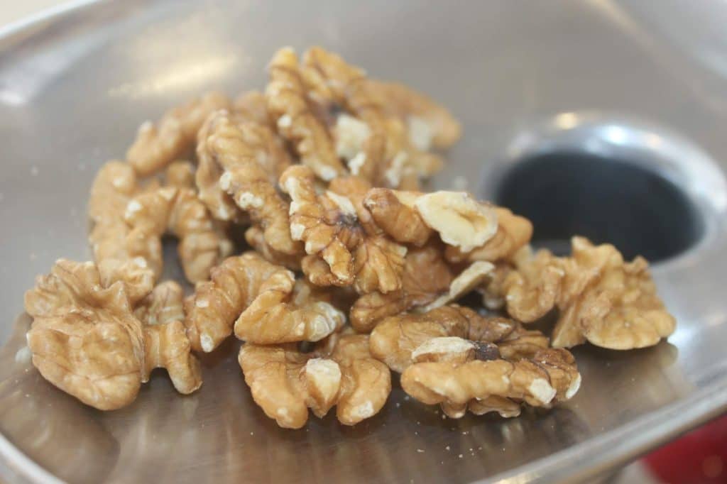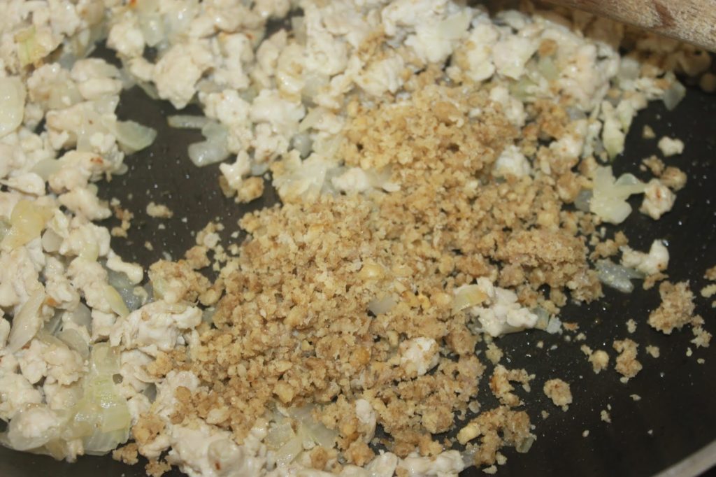 - Récupérez le poulet et mettez-le dans la poêle. Mélangez bien. Passez les noix dans le hachoir et mettez le résultat obtenu dans la poêle.