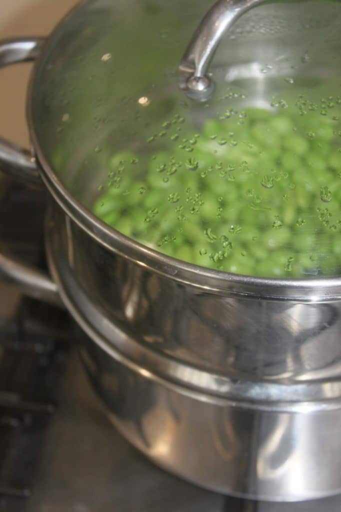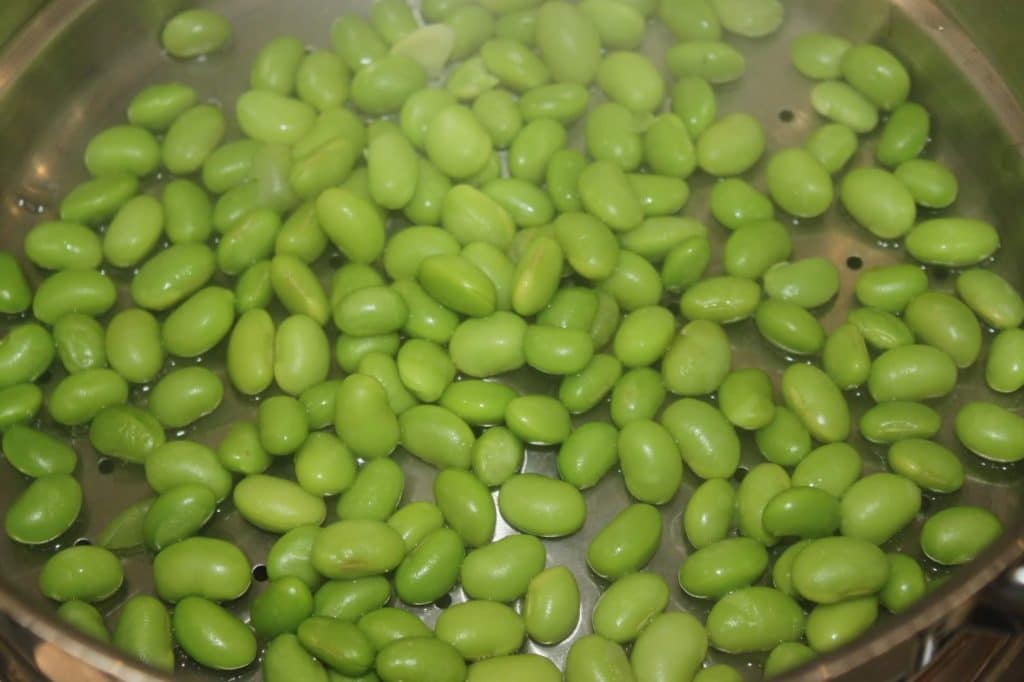 - Faites cuire à la vapeur les edamade ou les fèves pendant 10 minutes.