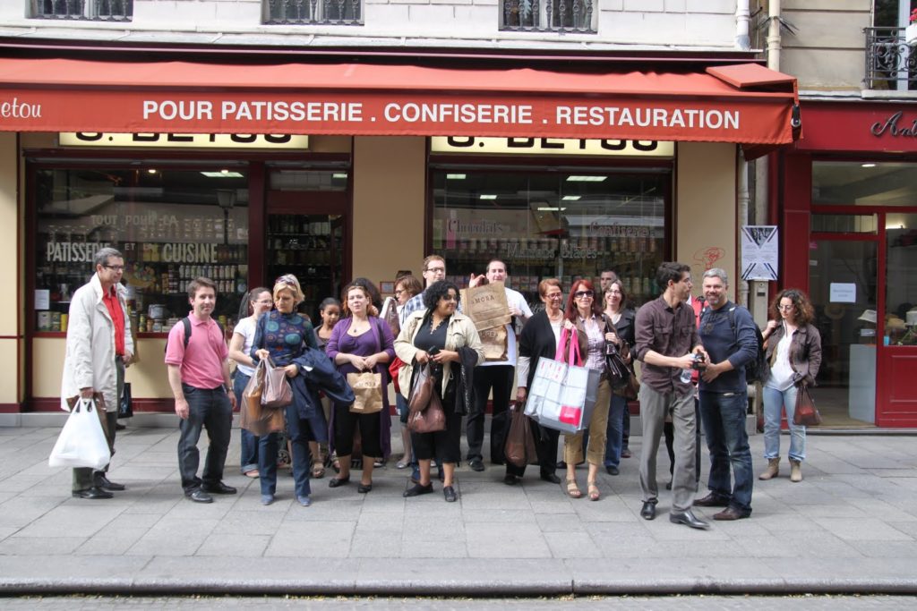 La boutique G.Detou au bord de l’explosion avec tout le monde. Nous sommes d’ailleurs ensuite allés à l’épicerie de Bruno. La prochaine, je scinderai le groupe en deux!!