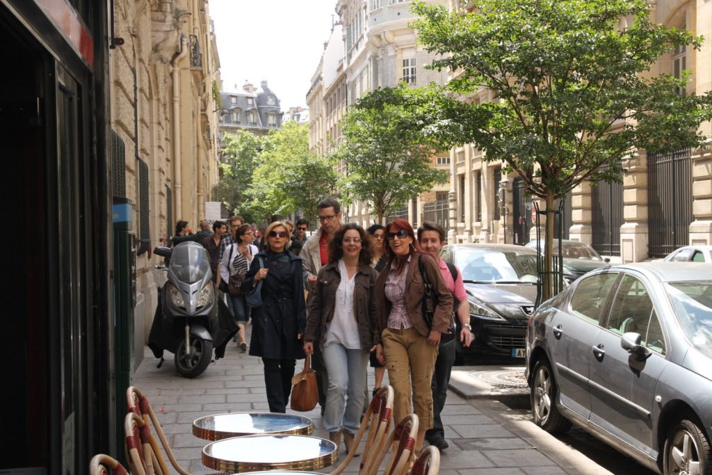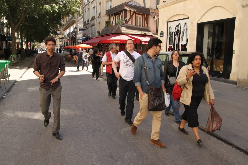 Tout un groupe qui ne passe pas inaperçu dans les rues ensoleillées de Paris!