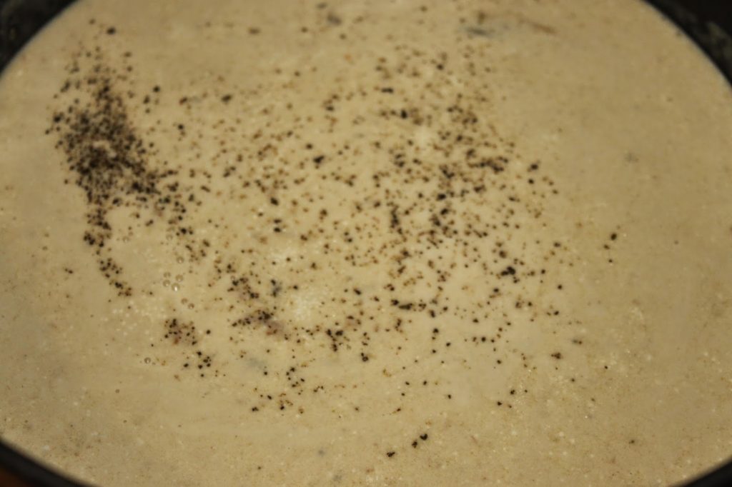 - Salez, poivrez et ajoutez de la noix de muscade dans la sauce. Goûtez pour rectifier l’assaisonnement en essayant de ne pas manger le contenu (c’est déjà tellement bon !!).