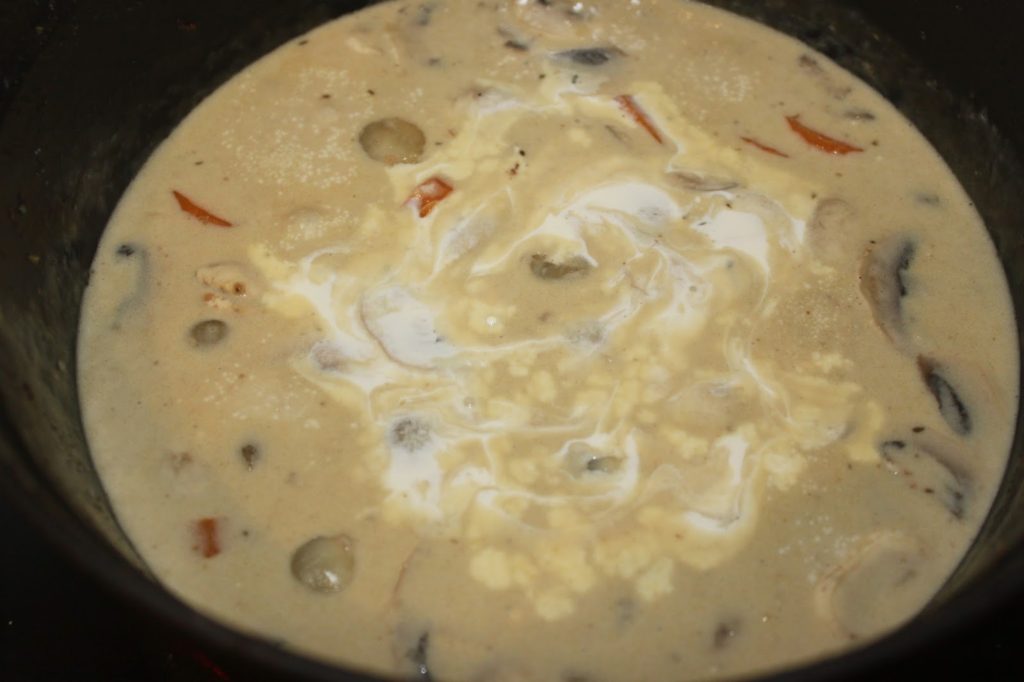 - Faites cuire une petite demi-heure. Les légumes doivent être cuits comme il faut et le jus un peu réduit et onctueux. Versez alors la crème.
