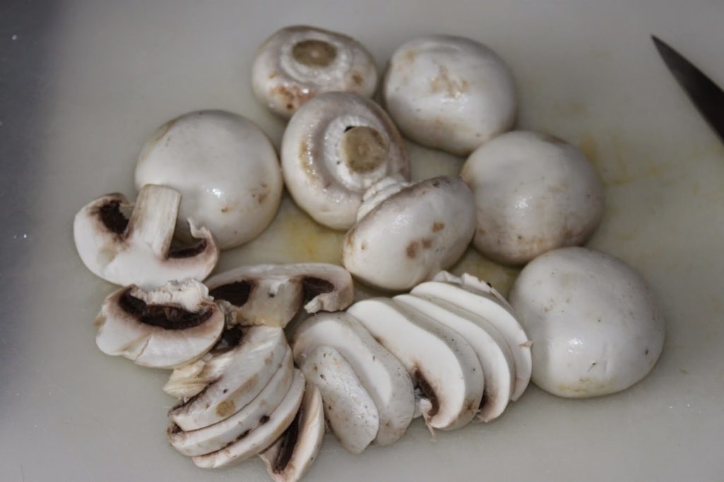 - Lavez les champignons et ôtez une partie du pied. Coupez ensuite en tranches.