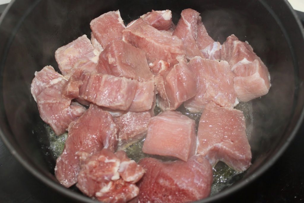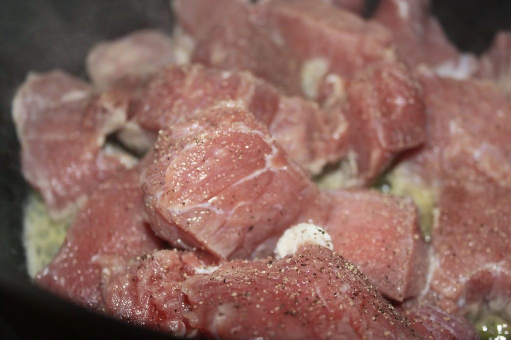 - Quand il crépite, ajoutez les morceaux de sauté de veau.