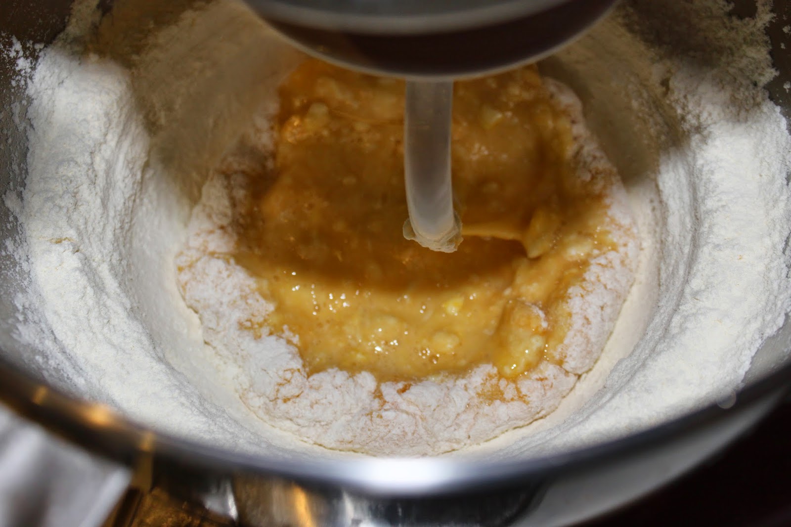 Mélangez avec le crochet pétrisseur. Vous pouvez bien sûr réaliser toute ces opération à la main, ce sera simplement plus long ! Versez petit à petit le lait puis laissez pétri en vitesse moyenne pendant 10-15 minutes.
