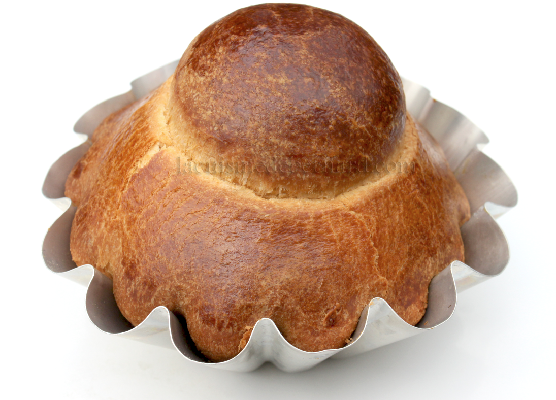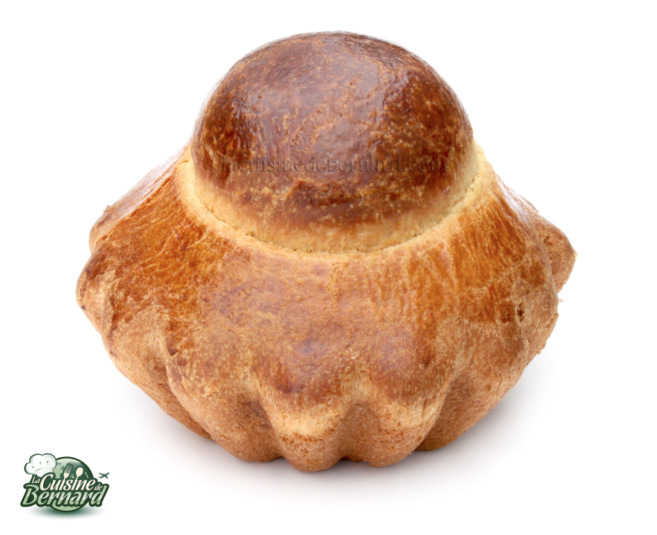 La fameuse brioche à tête ! Un délice facile à faire en apparence, mais quand on s’y met, on s’aperçoit vite que la tête pousse de travers… Mais il y a un moyen simple de la réussir. Je vous donne ma recette que j’ai faite après plein d’essais de proportions. Quand on fait une brioche trop riche en beurre, elle devient curieusement presque plus sèche. Je voulais une brioche tendre au goût incomparable et le seul moyen est pour moi de baisser un petit peu la proportion de beurre et augmenter légèrement celle du sucre pour apporter du moelleux. Résultat: la brioche que j’aime, que l’on déguste au goûter ou au petit déjeuner… Il y a du lait dedans, ce qui pourrait se rapprocher du pain au lait, mais dans la brioche, on met souvent du lait en poudre. Pour moi cela reste cependant une brioche car elle contient tout de même beaucoup de beurre !Note de Bernard: les personnes qui ont goûté ma brioche ont été surpris par son délicieux goût: elles me disaient que lorsqu’elle faisaient leur propre brioche, il y avait un goût puissant de levure. Ici non. Même avec de la levure sèche. Il faut simplement respecter les trois pousses: une première directement après le pétrissage, une deuxième au frais la nuit et la dernière dans le moule. C’est la pousse au frais qui développera le mieux les arômes de brioche. Pour la forme, même si elle n’est pas belle la première fois, elle sera tout de même délicieuse… Alors ne baissez pas les bras !