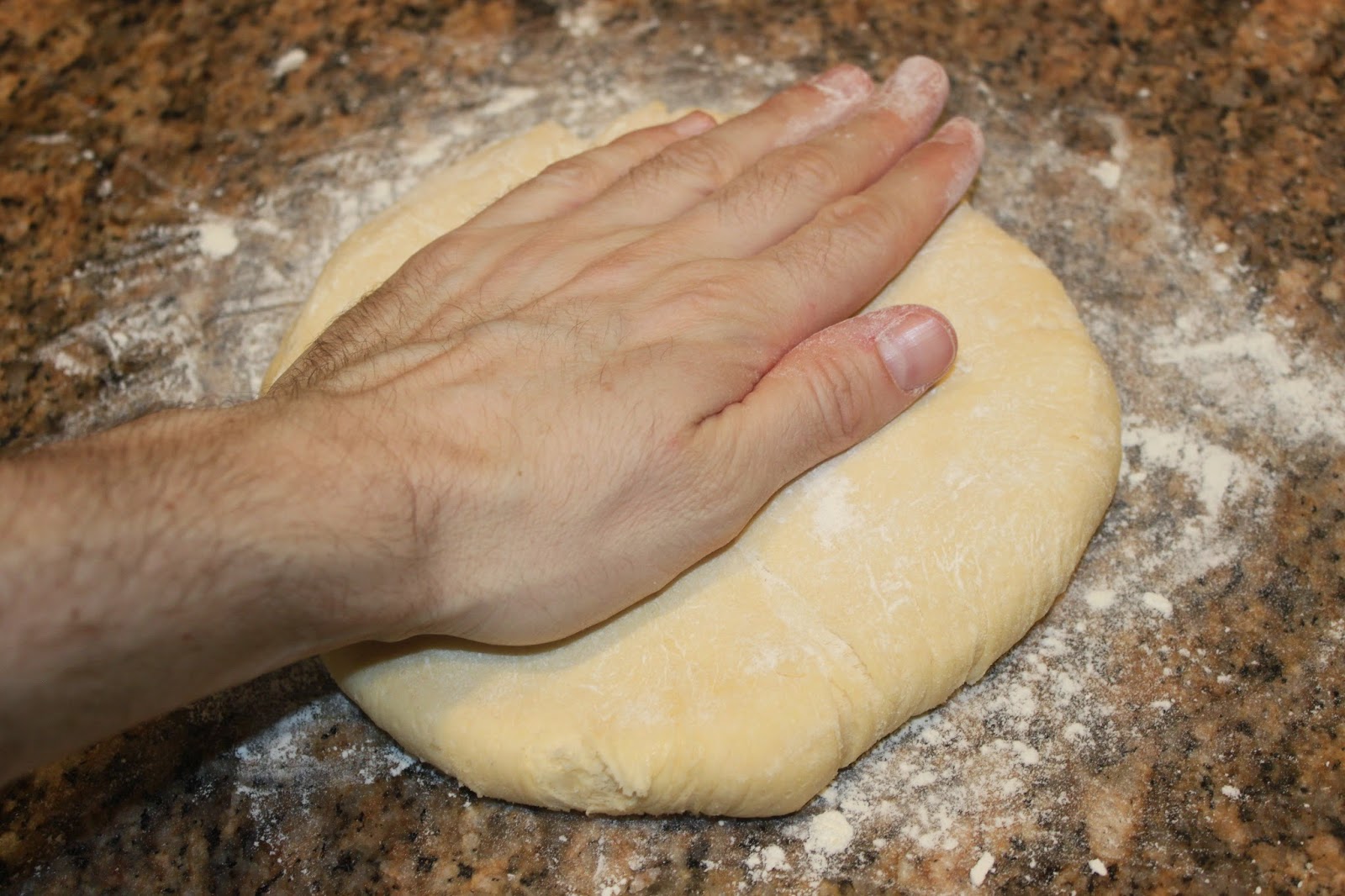 Pesez votre pâte: elle doit faire en gros dans les 580g. Il y a toujours des pertes entre les ustensiles, le film étirable etc. Pesez une boule de 90g et roulez-la avec un peu de farine, pas trop non plus !! Roulez le reste de pâte en une autre boule.