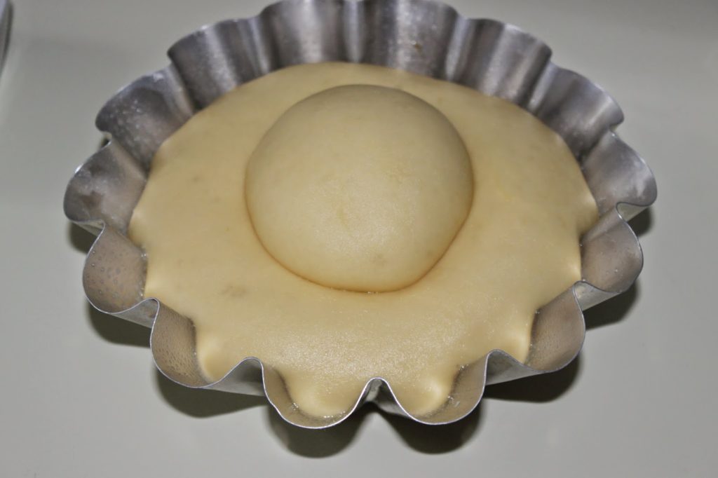 Posez la petite boule au centre puis laissez gonfler pendant 1h à 40°C ou 1h30-2h à température ambiante.