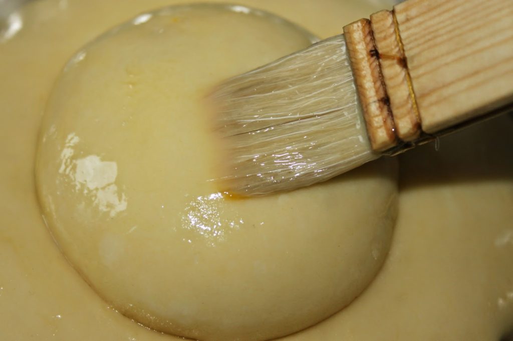 Pour la dorure, mélangez l’oeuf battu avec le lait puis passez-la sur la surface de la pâte délicatement au pinceau.