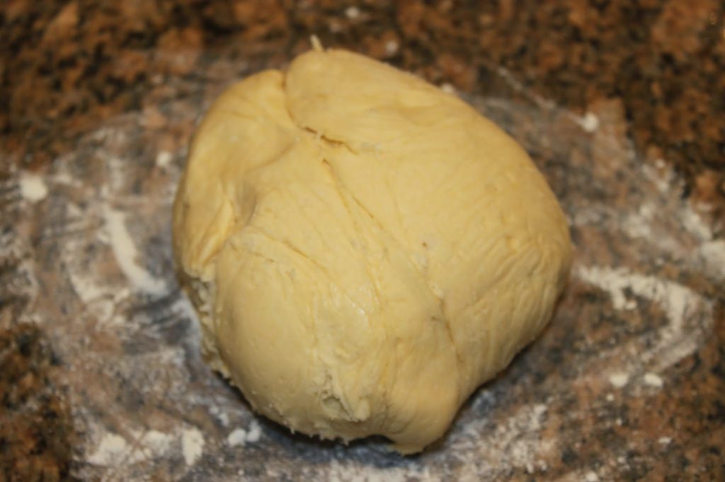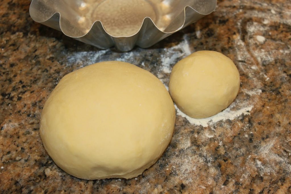 Le lendemain, déballez la boule de pâte froide et placez-la sur un plan de travail légèrement fariné. Cette fois, le beurre a refroidi et la pâte est plus facilement manipulable. Avec un voile de farine, elle ne collera plus.