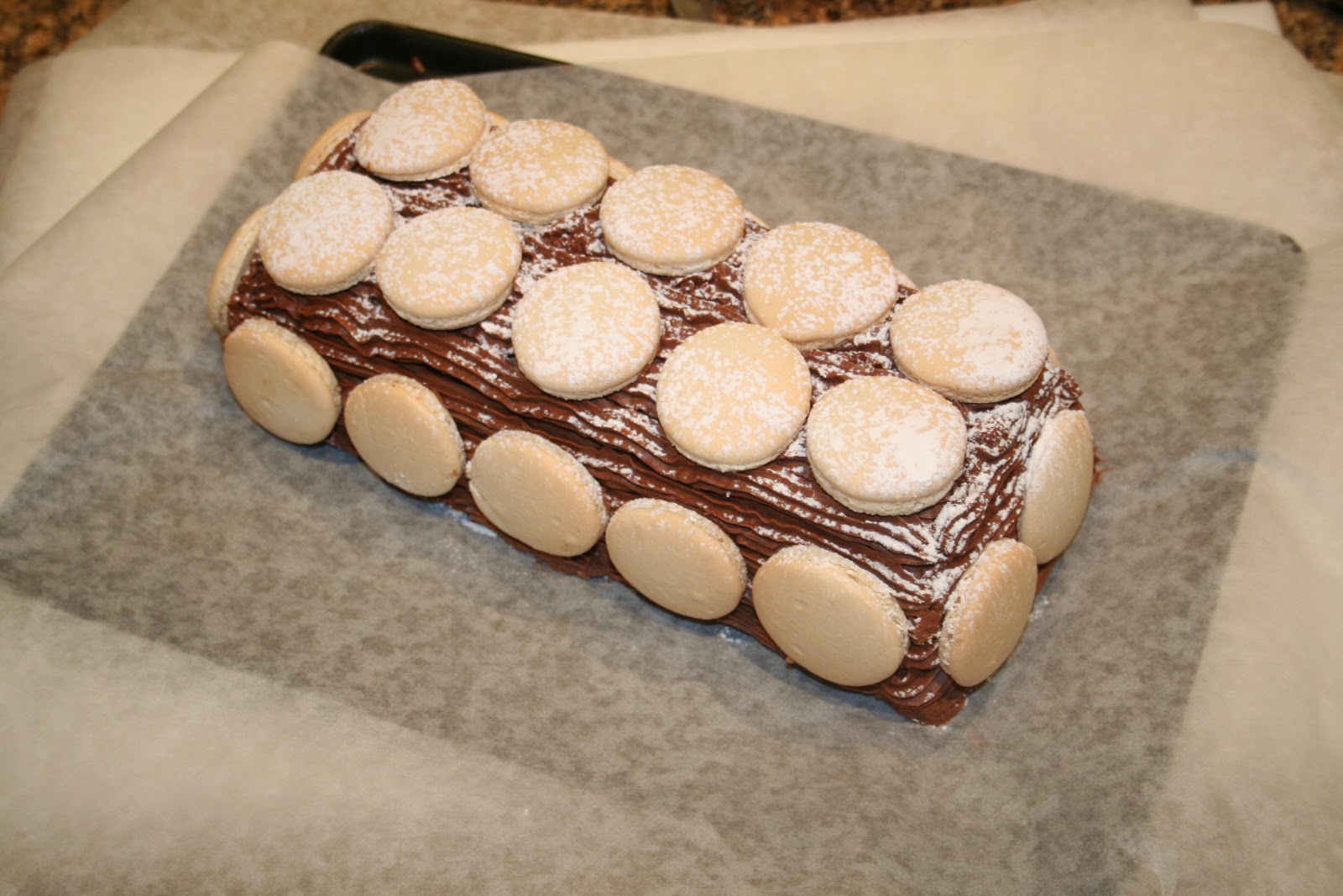 - Recouvrir intégralement la bûche d’une généreuse couche de ganache.