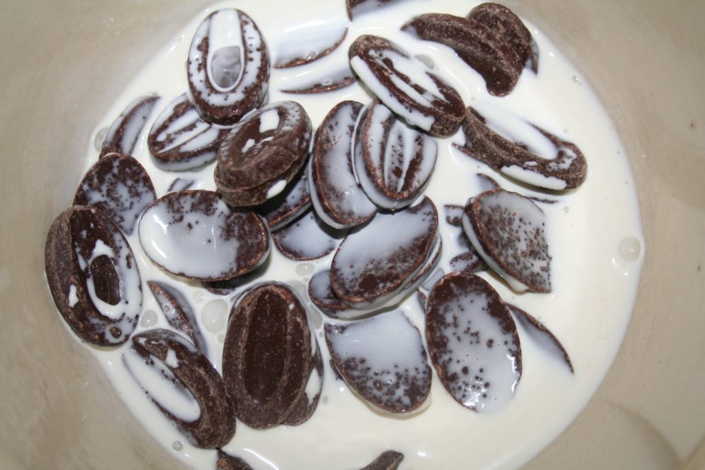 - Mettre la crème liquide et le chocolat dans un bol et chauffer une minute ou deux au micro-onde, ou alors au bain marie.