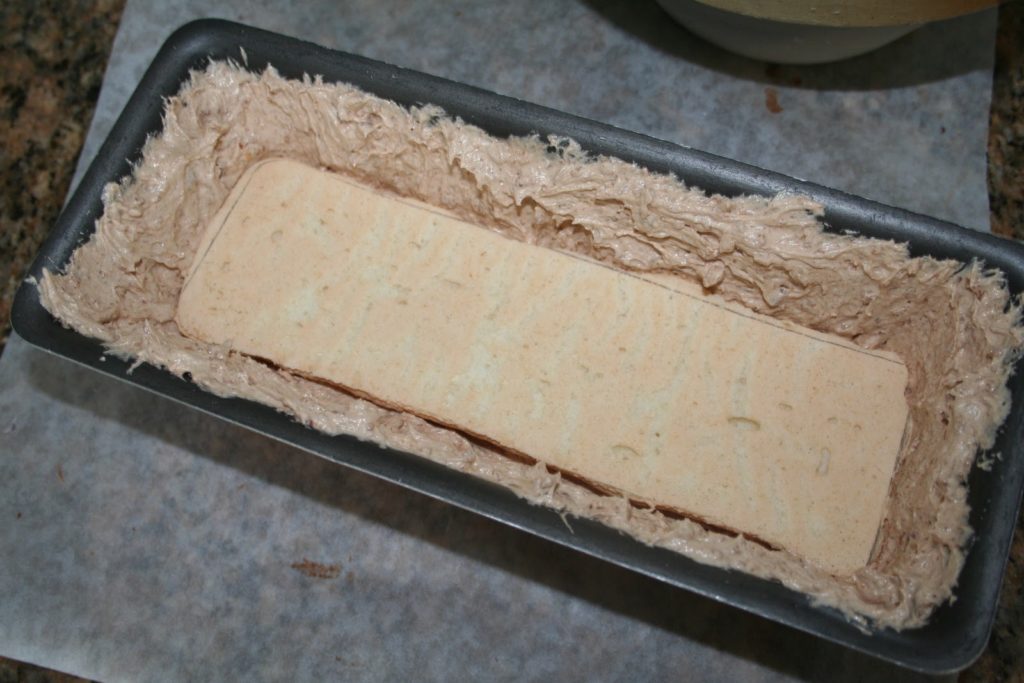 Dans le moule choisi pour confectionner la bûche; appliquer une couche de crème mousseline sur tout l’intérieur.