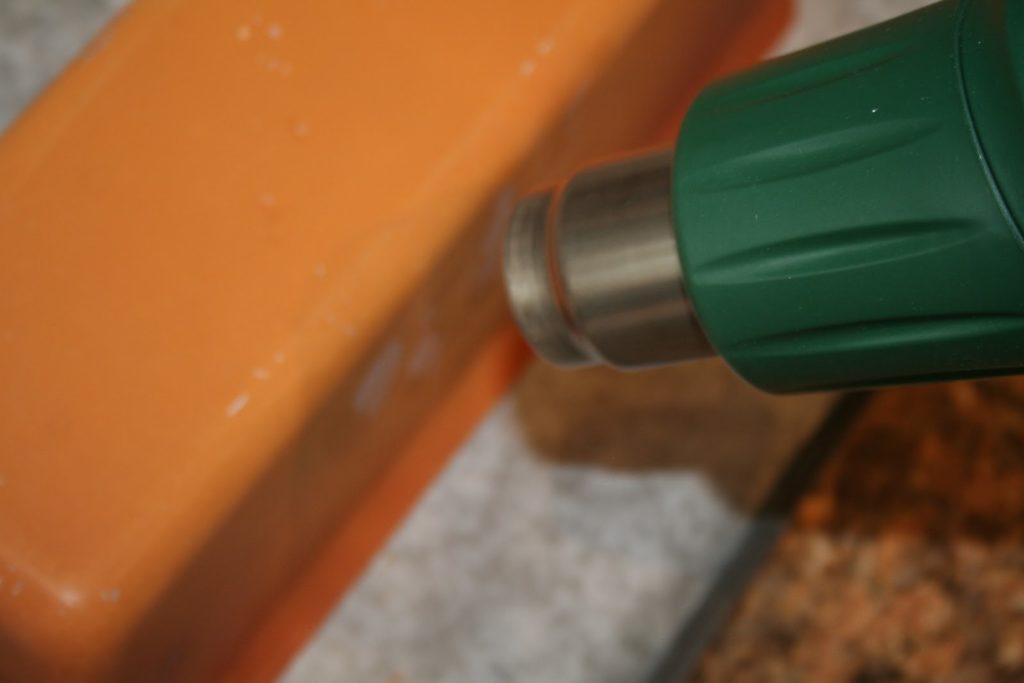 Avec un décapeur thermique, ou plus simple, avec un sèche-cheveux, chauffer toute la surface du moule retourné sur un papier sulfurisé.
