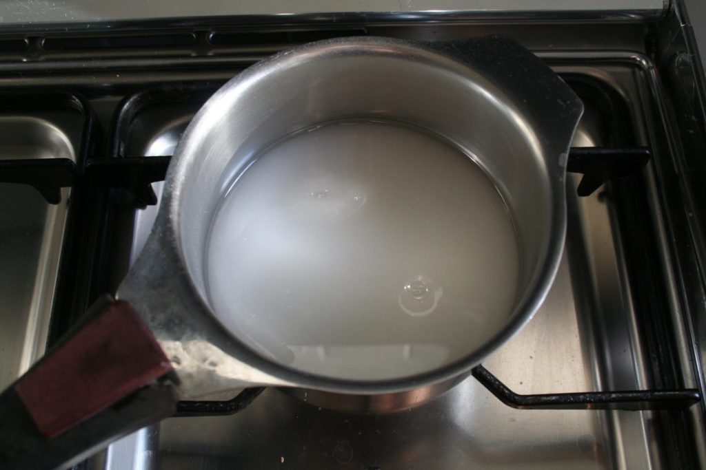 - Pour la meringue italienne, verser le sucre semoule et l’eau dans une casserole et chauffer sur feu modéré.