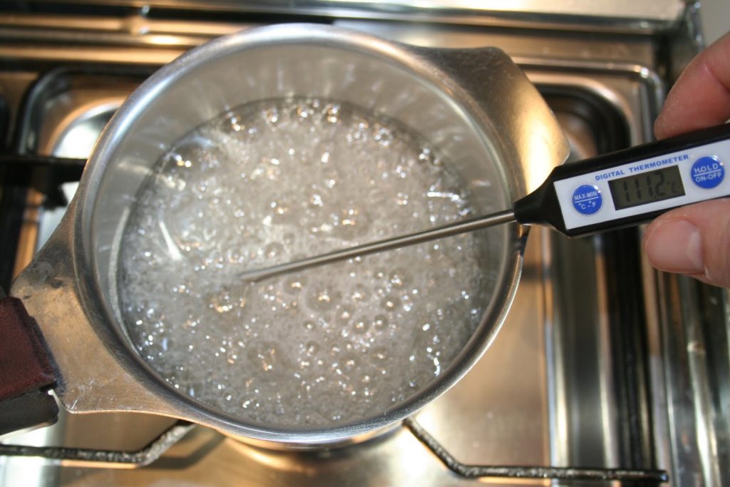 - L’ensemble doit atteindre 117°C, mais il faut commencer à monter les blancs en neige quand le sucre atteint 110°C.