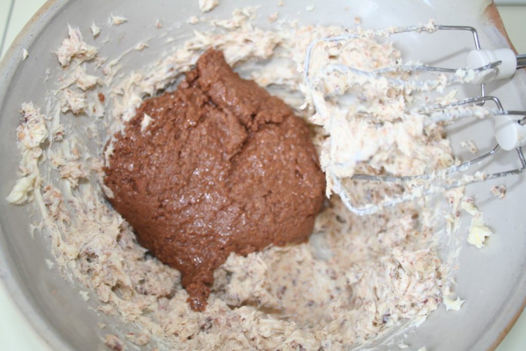 - Ajouter le praliné et la pâte de noisettes, bien mélanger.
