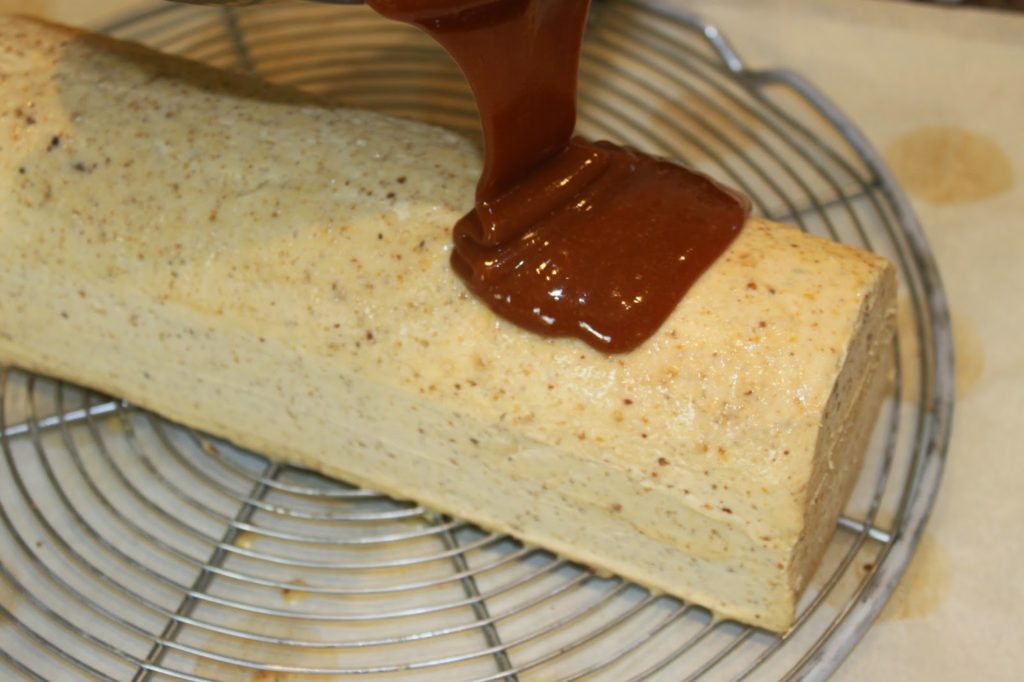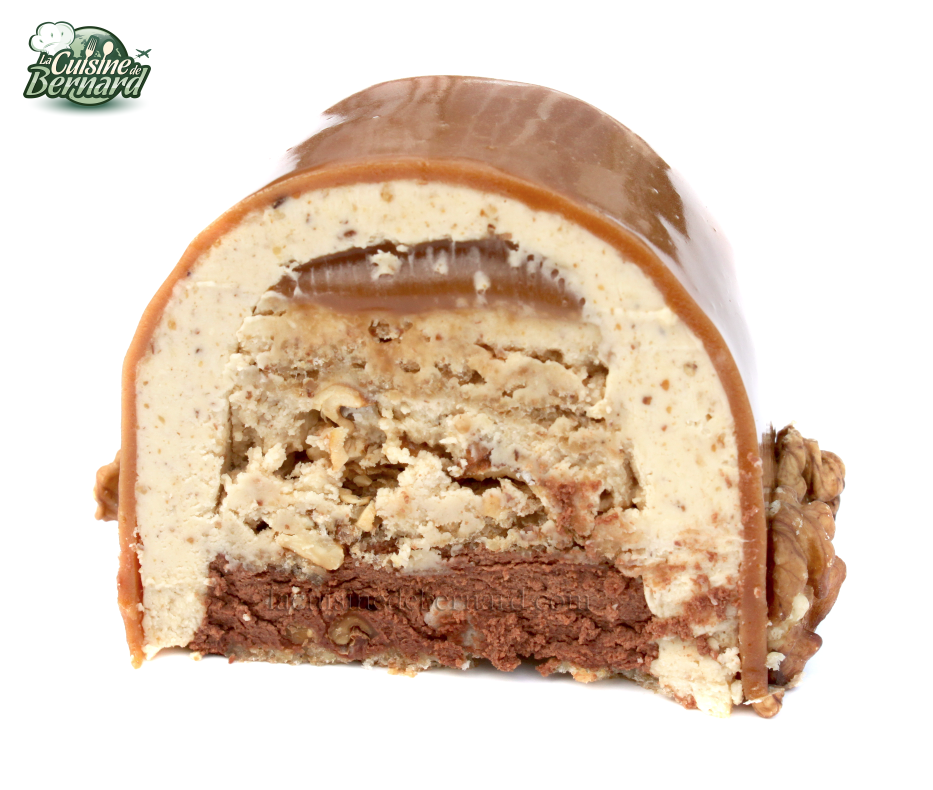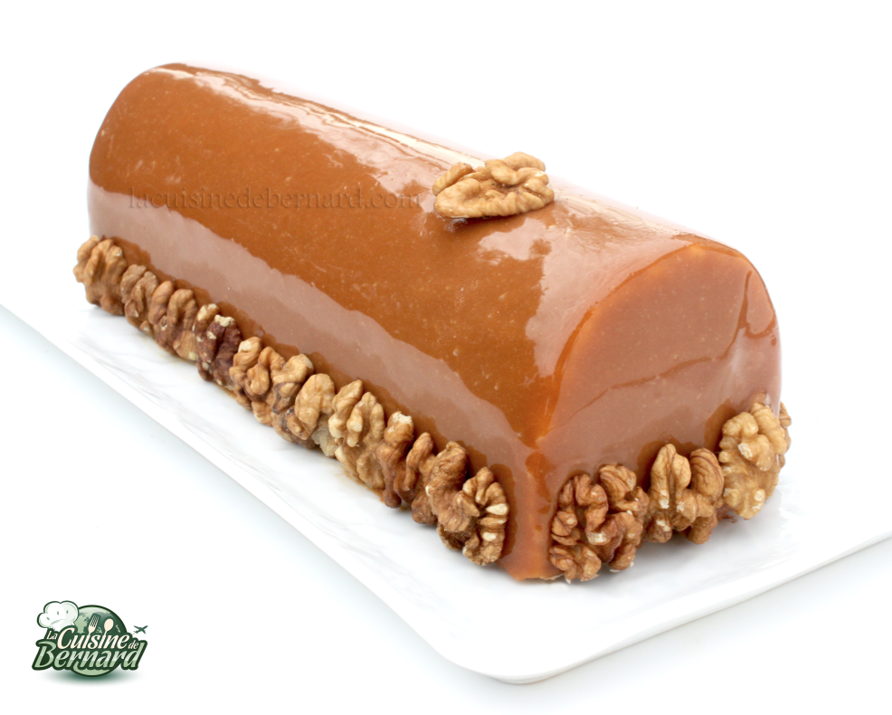 Recette de la bûche caramel noix et chocolat: (pour un moule à bûche de 23cm de long) :