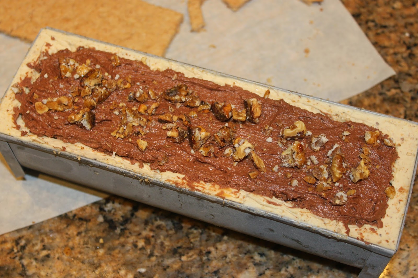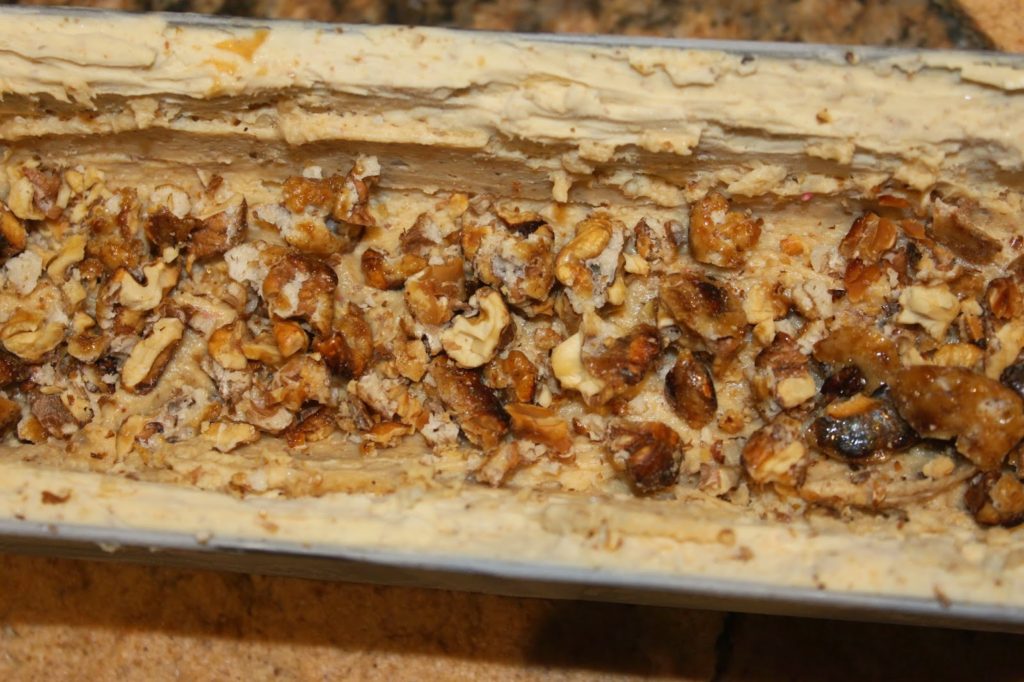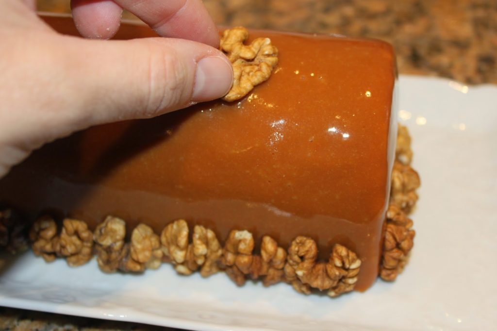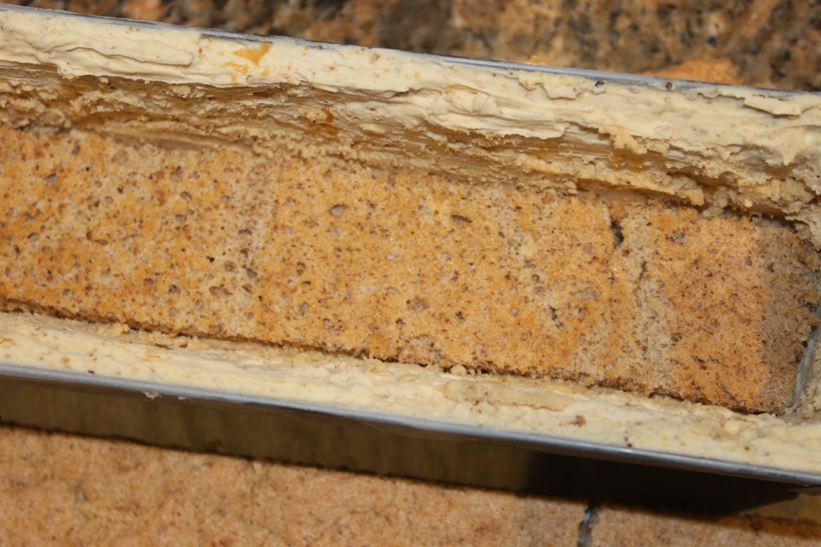 - Versez-en une bonne couche dans le fond du moule sur la crème au beurre aux noix.