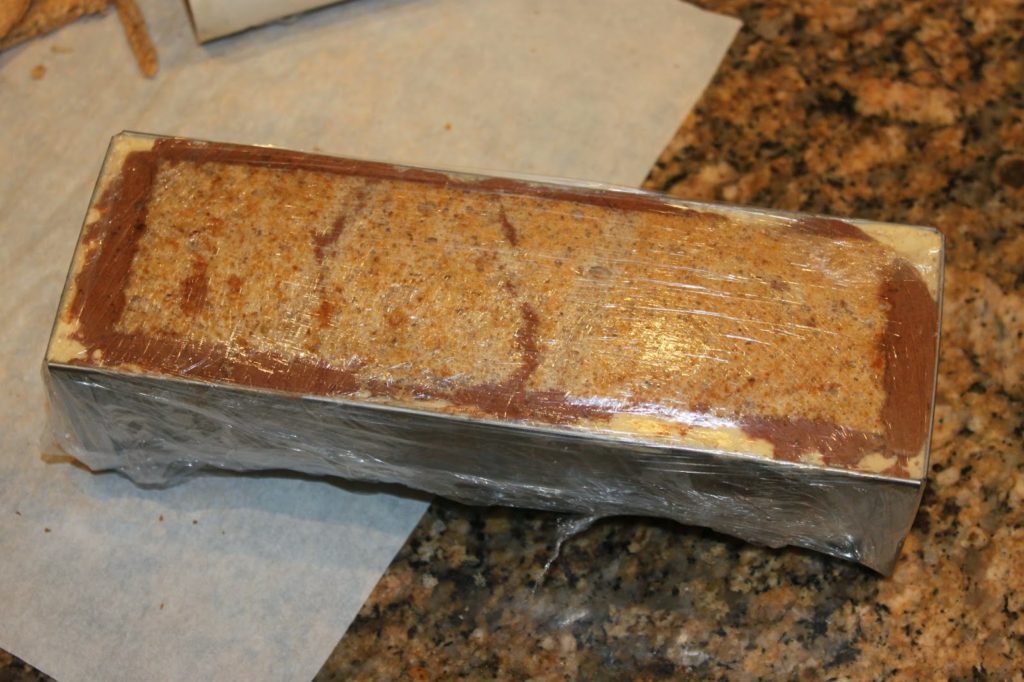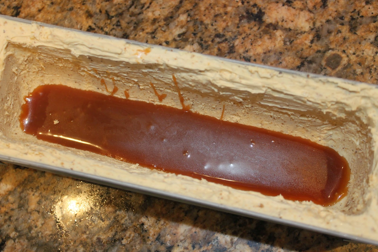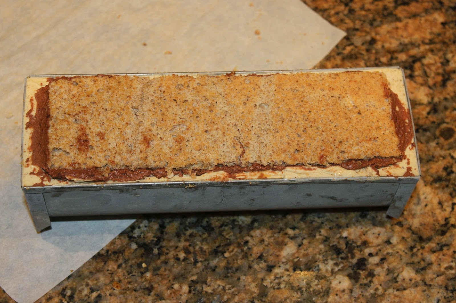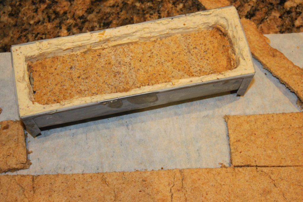 - Versez-en une bonne couche dans le fond du moule sur la crème au beurre aux noix.