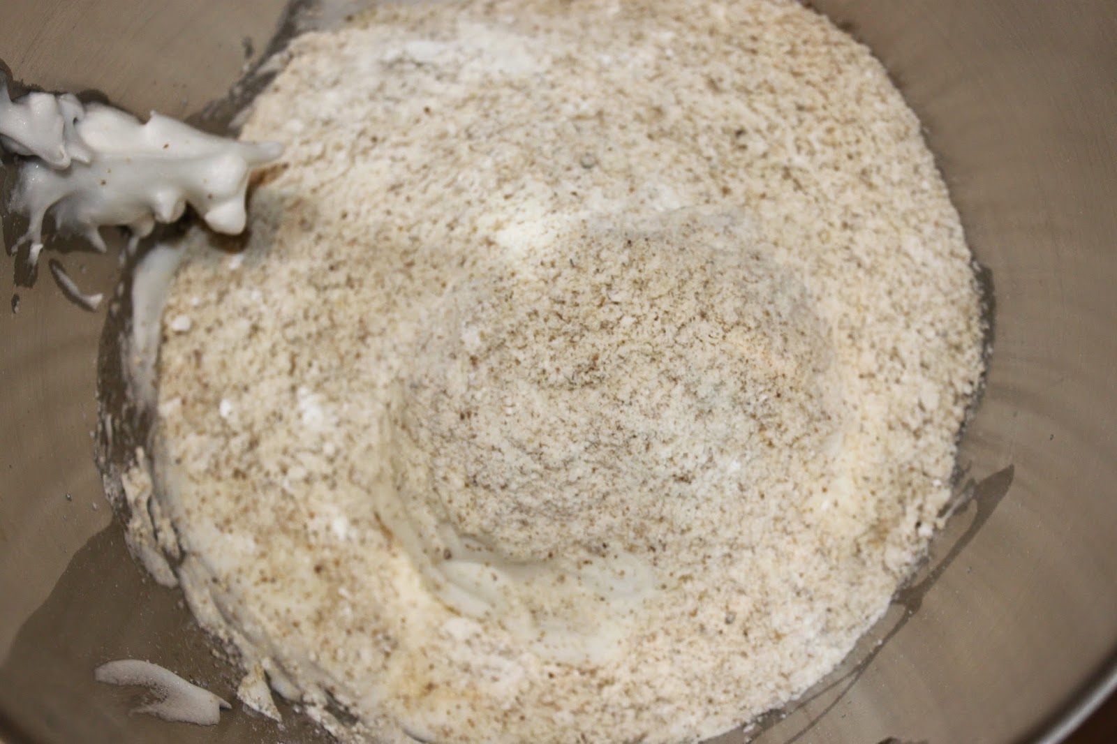- Montez les blancs en neige très ferme avec le sucre semoule. Ajoutez alors la poudre aux noix.
