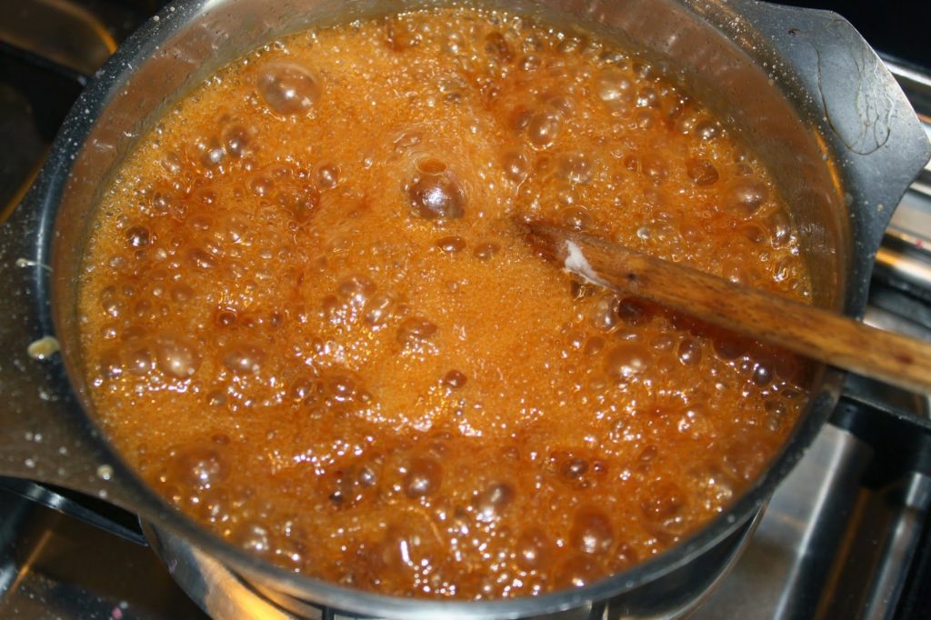 - Si vous avez fait votre caramel la veille, il doit donc être froid ou au moins à température ambiante.