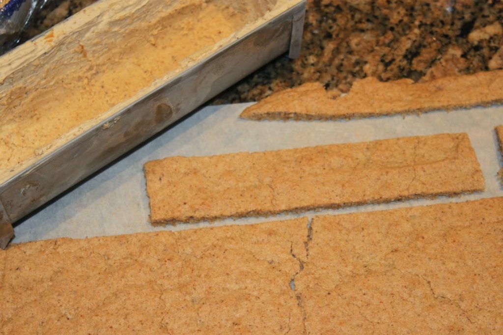 - Laissez refroidir puis décollez la dacquoise du papier. Coupez un premier rectangle de pâte pour le placer dans le fond du moule.