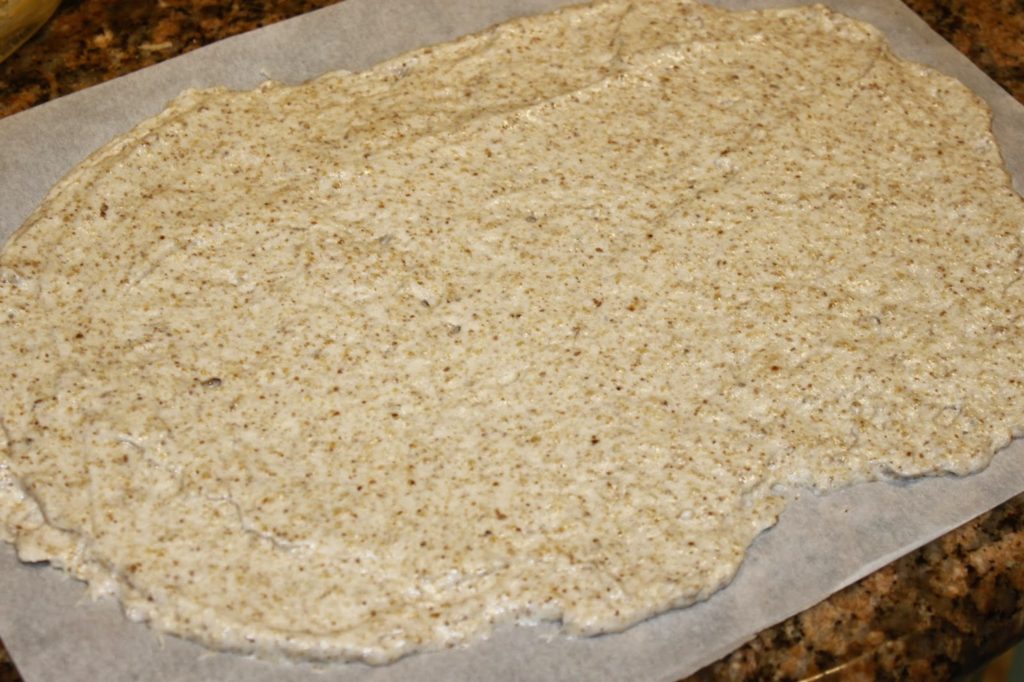 - Versez sur un papier sulfurisé de la taille de votre plaque. Peu importe que ce soit bien fait, essayez juste d’avoir une couche uniforme au niveau de l’épaisseur.