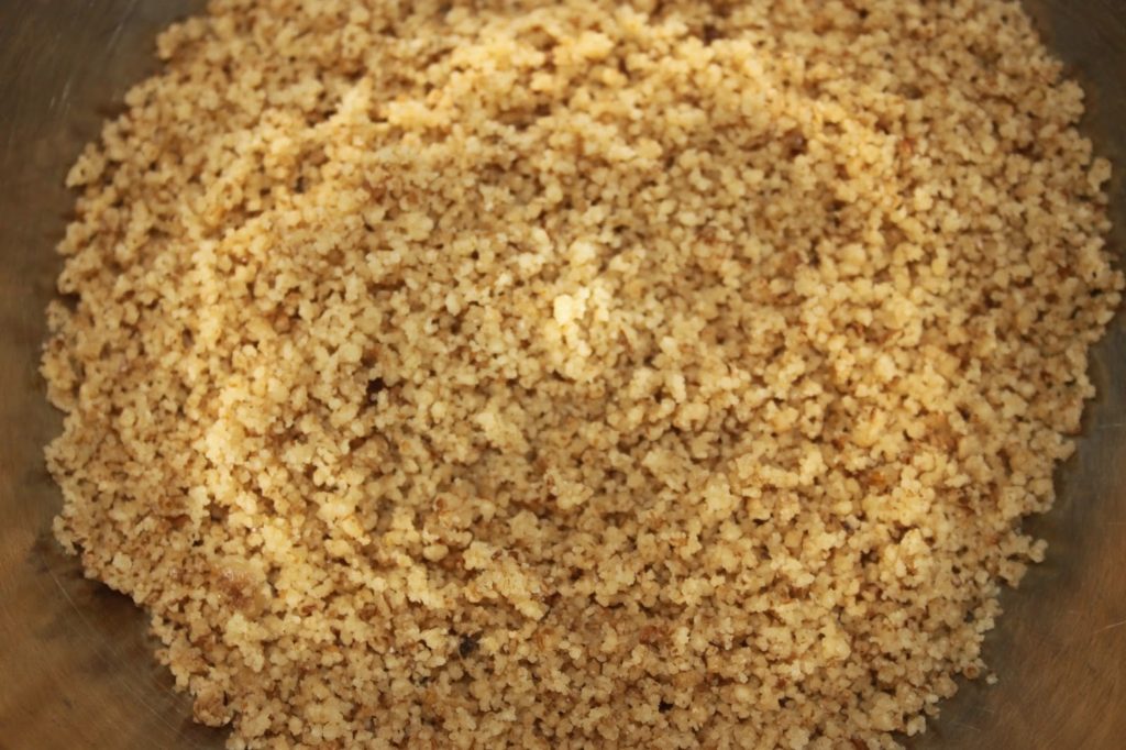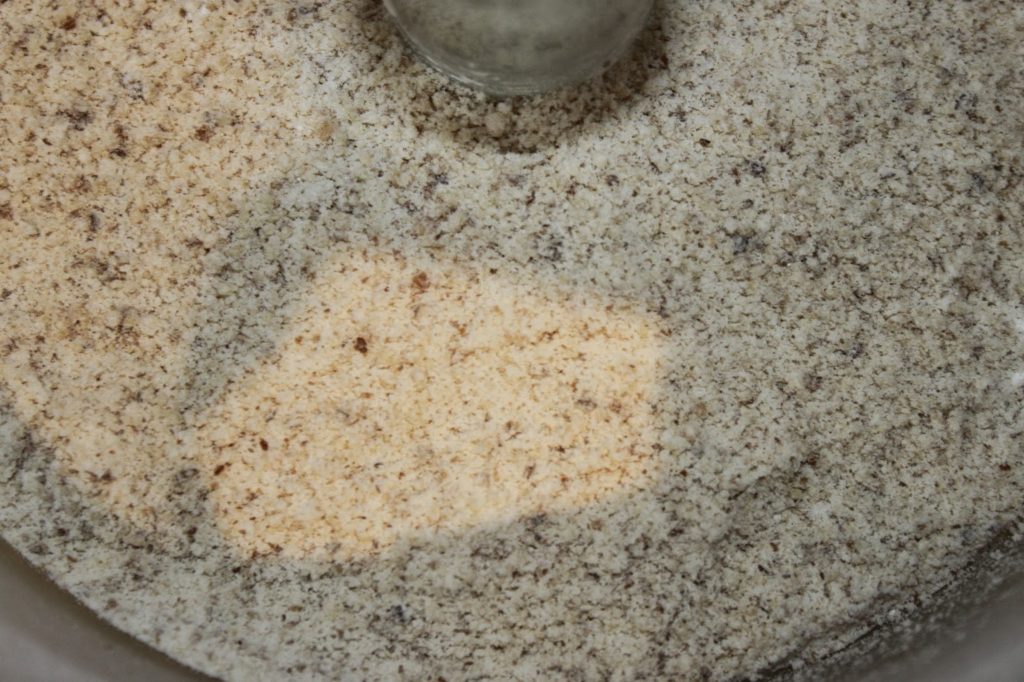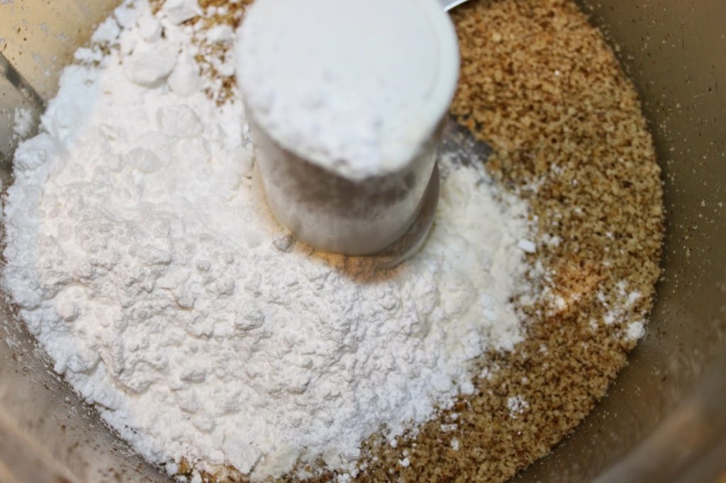- Préparez votre dacquoise aux noix. Mettez les cerneaux de noix au mixeur pour les réduire en poudre.