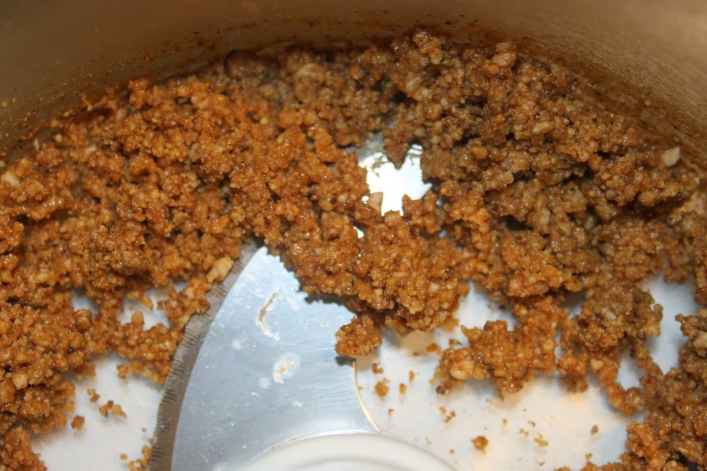 - Placez 100g de pralines de noix dans un mixeur et mixez-les pour avoir une poudre grossière.