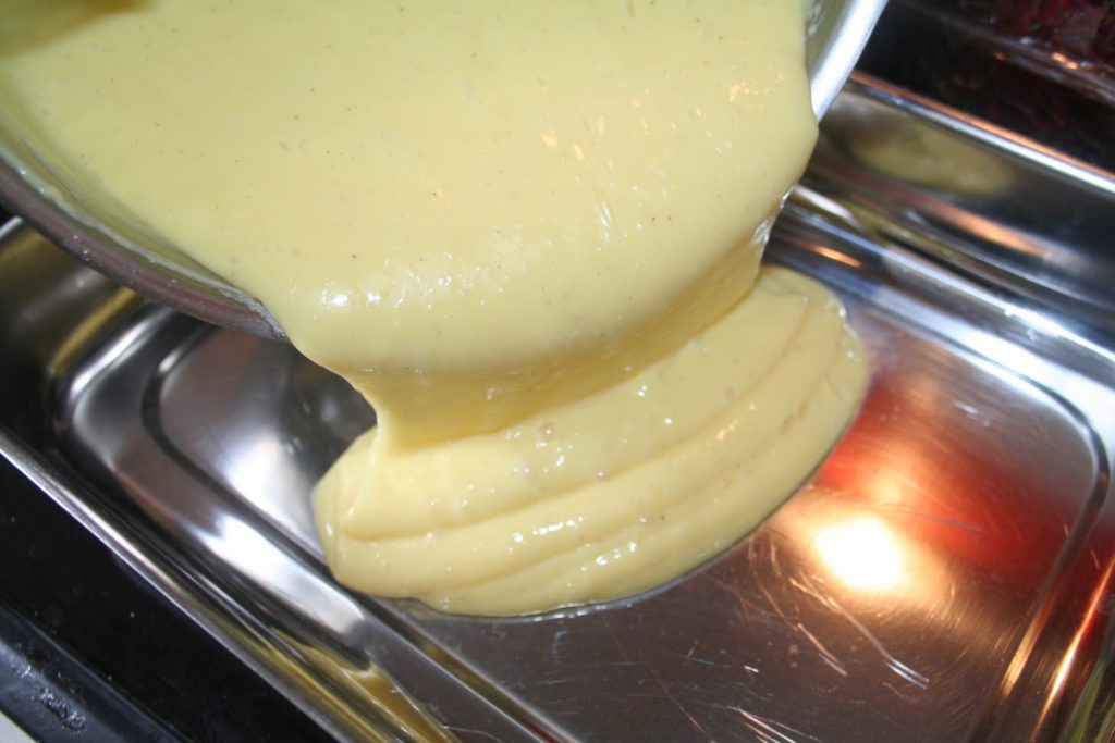 - Quand le lait bout, versez-en une petite quantité sur le mélange jaunes-poudre à crème.