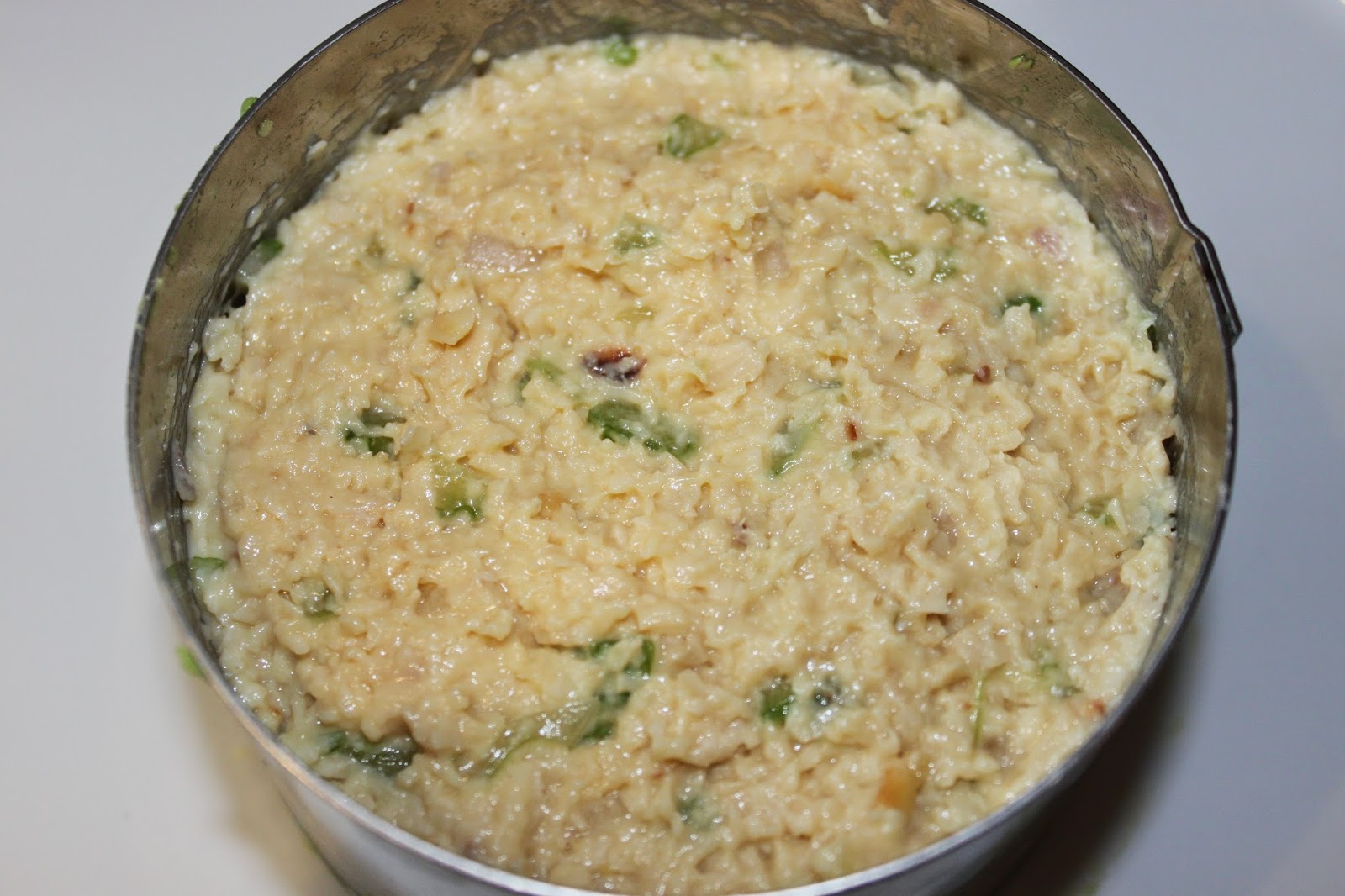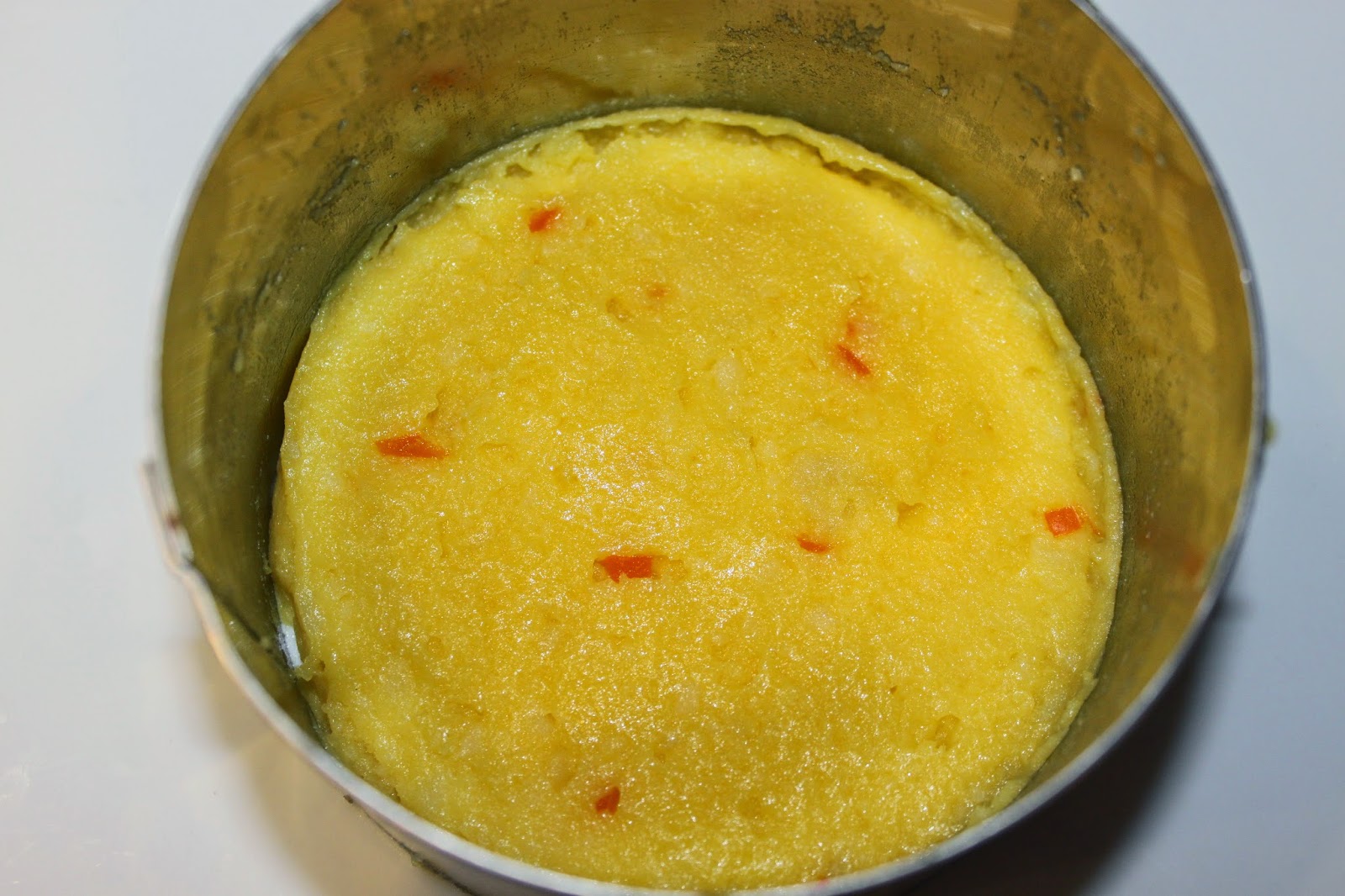 - Dans des cercles à mousse (donc assez haut) de 8cm (ou plus !) mettez une couche de purée.