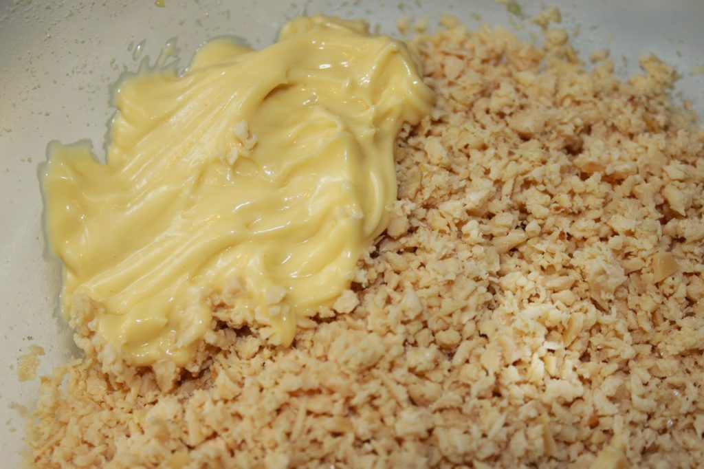 - Vous pouvez mettre à la place du thon en boite. Versez la chair dans un bol et ajoutez la mayonnaise.