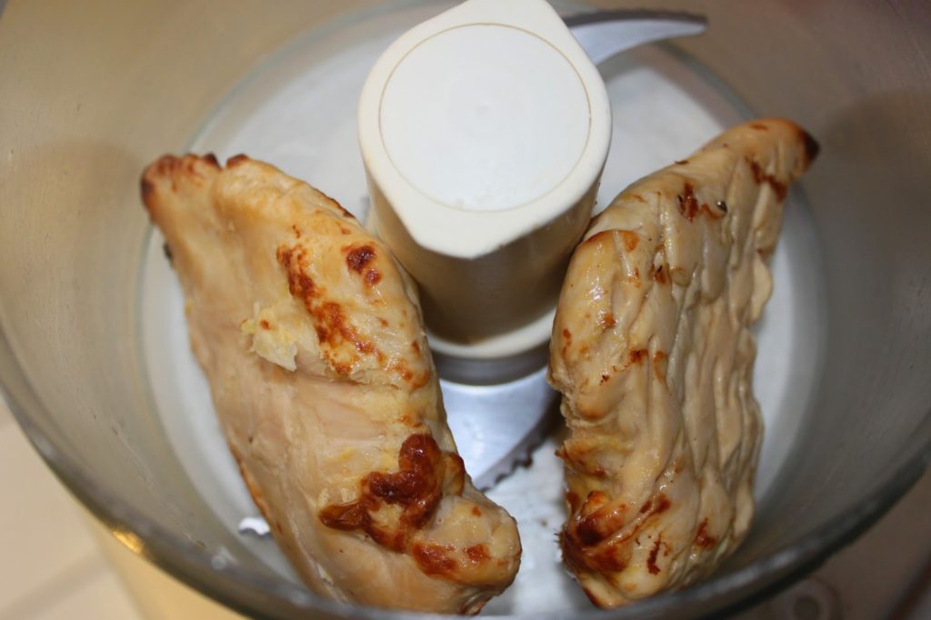 - Mettez au mixeur votre poulet cuit et refroidi.