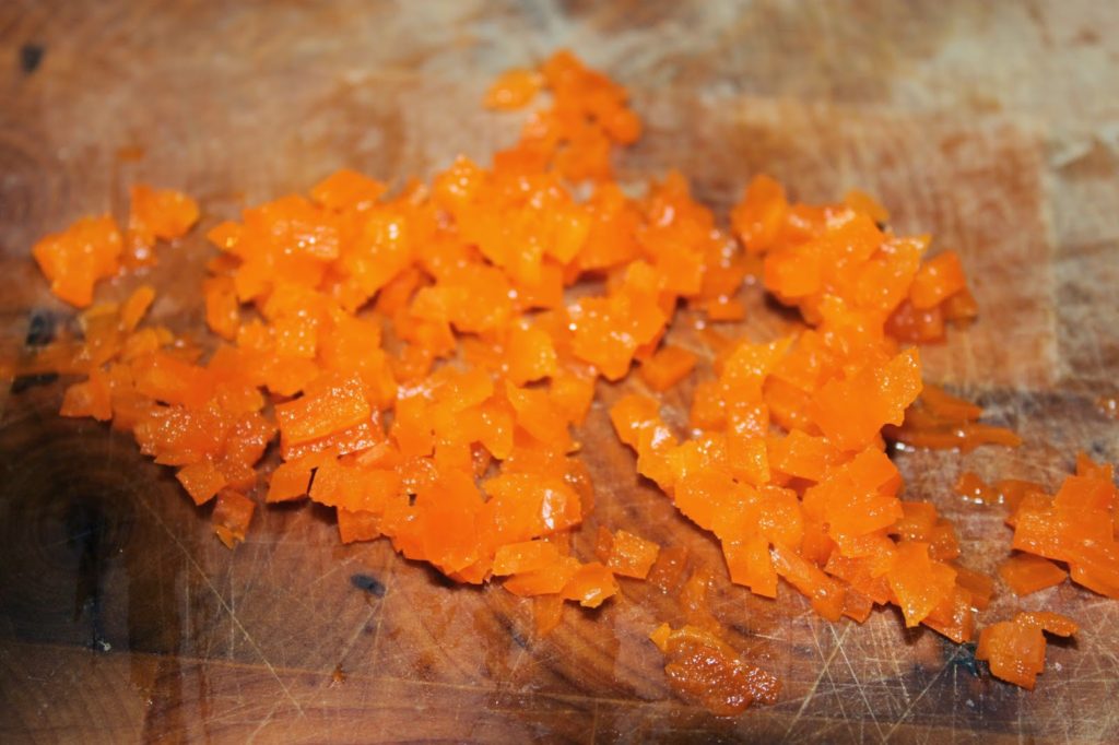 - Coupez finement quelques morceaux de céleri (à votre goût).