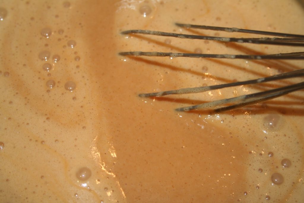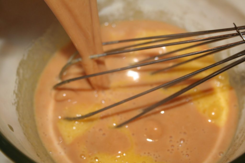 - Ajouter les jaunes d’oeufs et bien mélanger sans pour autant blanchir.