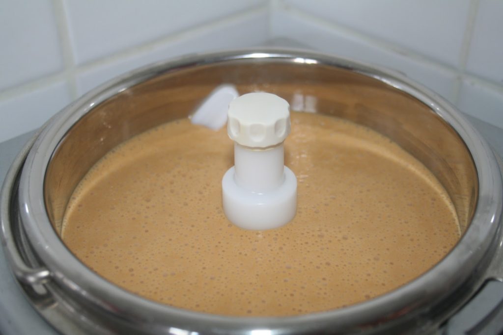 - Le lendemain, passer la crème au mixeur plongeant pour bien lisser le stabilisateur.