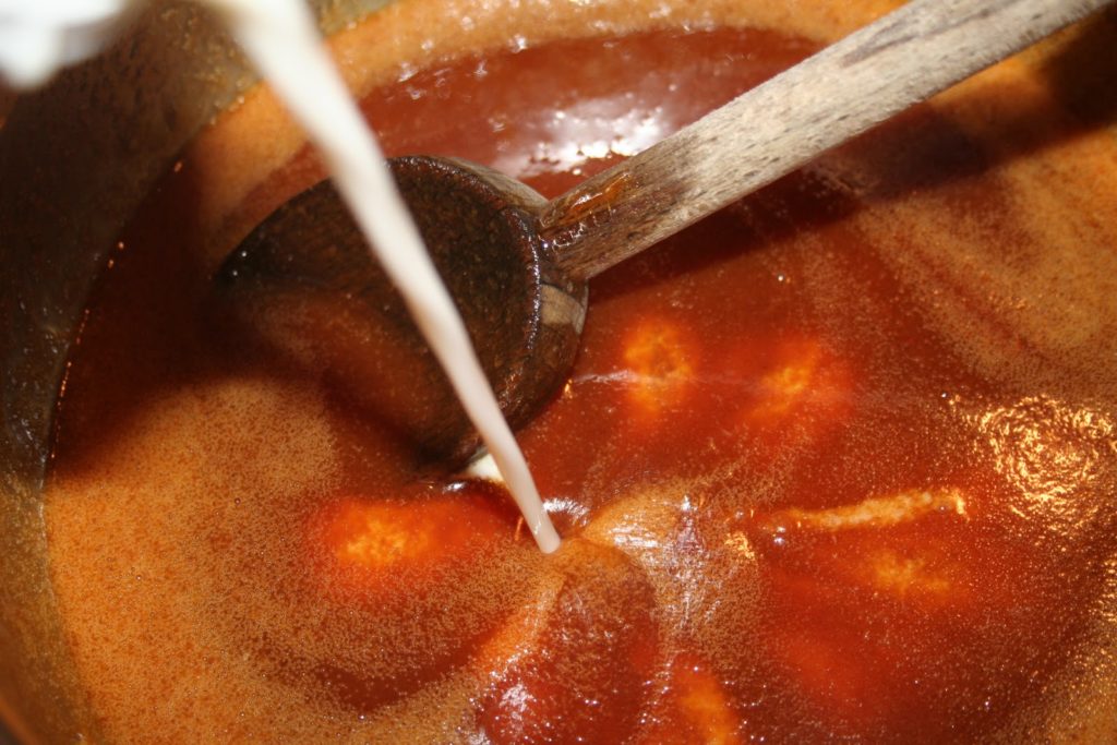 - Verser le lait caramélisé.
