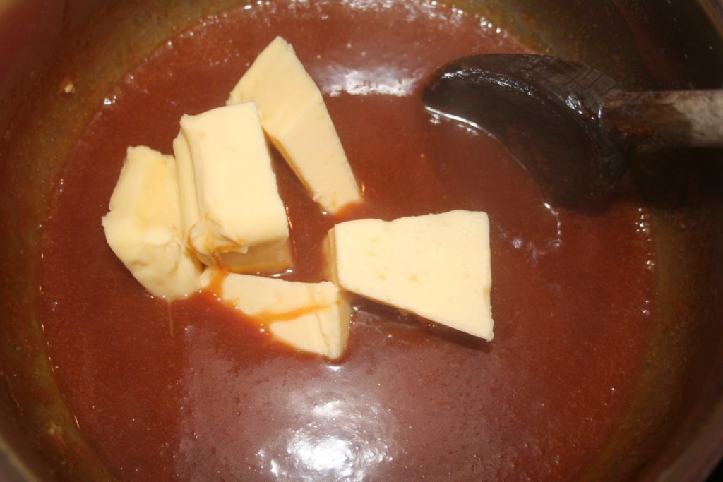 - Quand toute la crème est incorporée, ajouter le beurre, toujours hors du feu.