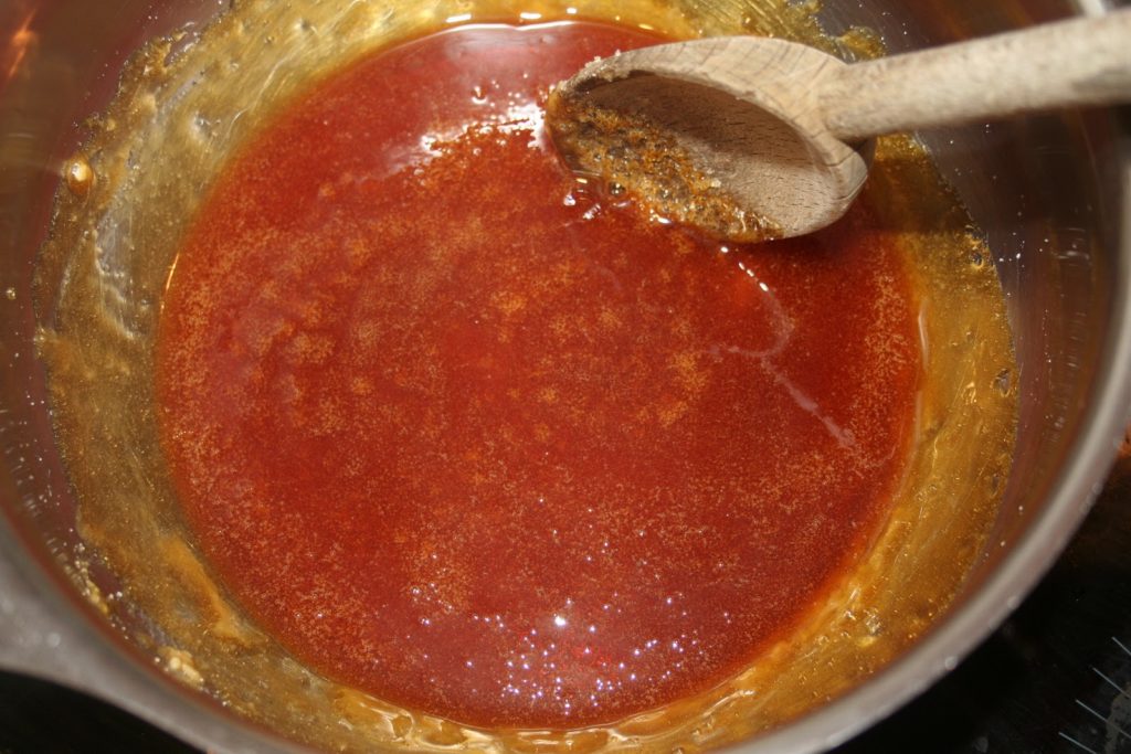 - Laisser le sucre se caraméliser. Il doit avoir une belle couleur assez prononcée.