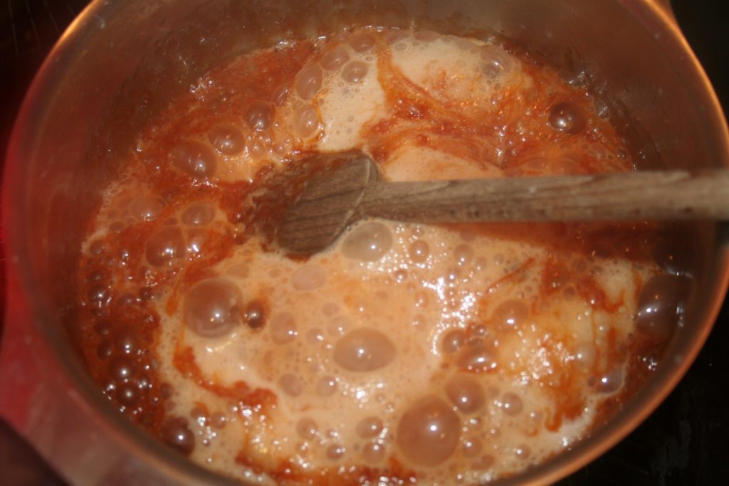 - Remettre sur feu modéré et laisser recuire et bouillir pour faire fondre les éventuels morceaux de sucre résistants!