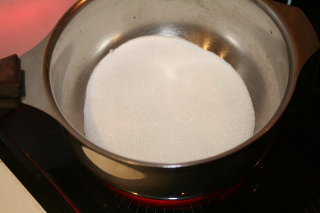 - Laisser chauffer. Le sucre va commencer à fondre.