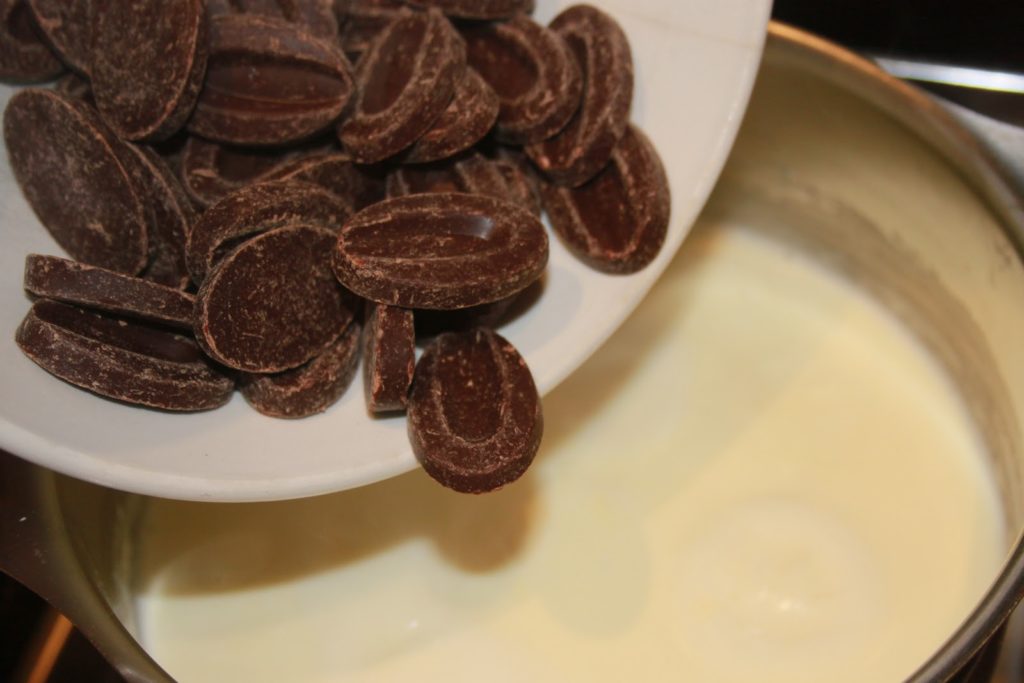 - Mettre le chocolat dans la crème bouillante.