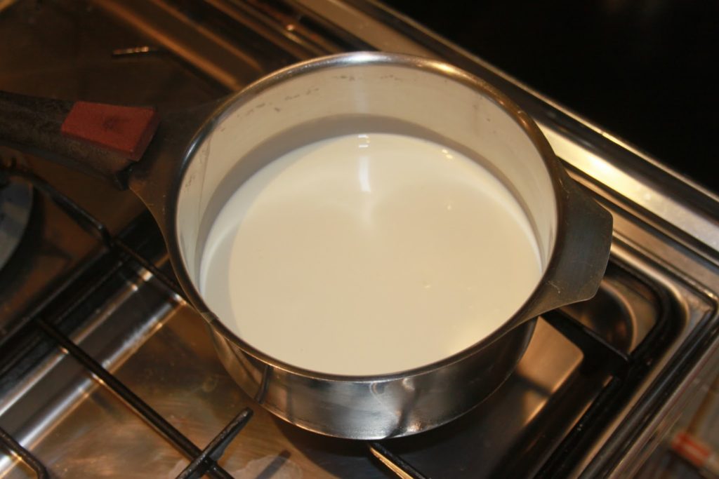 - Mettre la crème dans une casserole et chauffer sur feu doux.