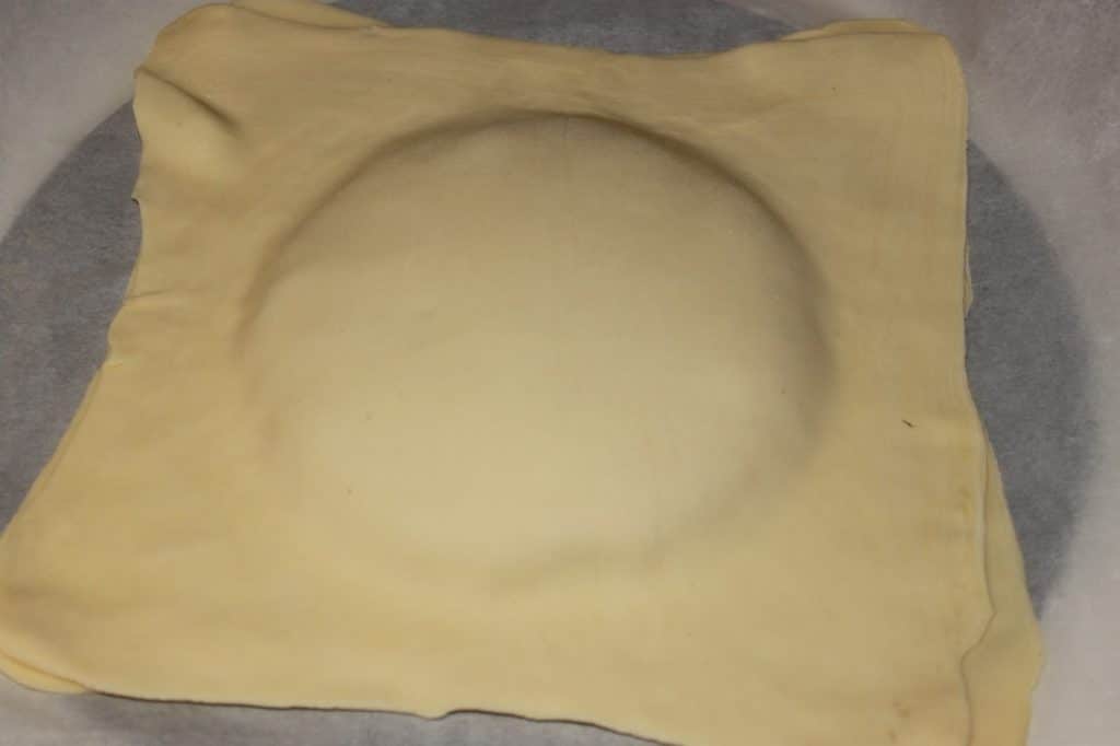 Enlevez l’excédent. Puis posez une deuxième pâte étalée de même taille. Appuyez bien autour de la crème pour bien souder…!