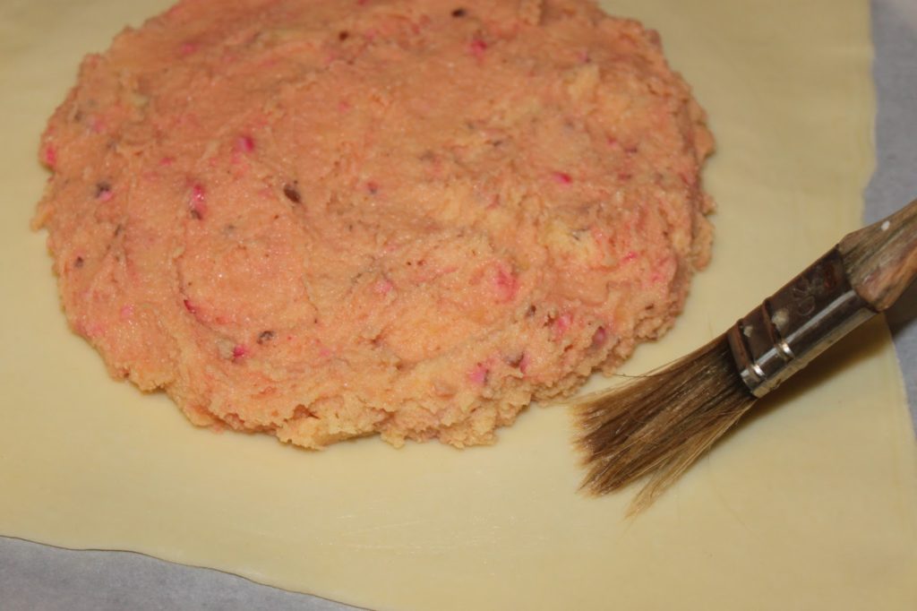 La veille, préparez la pâte feuilletée et la crème frangipane aux pralines roses.