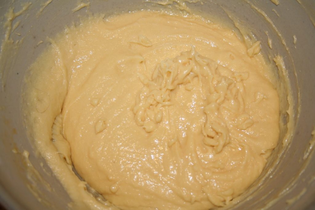 Mélangez puis ajouter les 90g d’oeuf. Pour peser 90g d’oeuf, mettre deux oeufs et les battre à la fourchette, puis peser simplement 90g…!