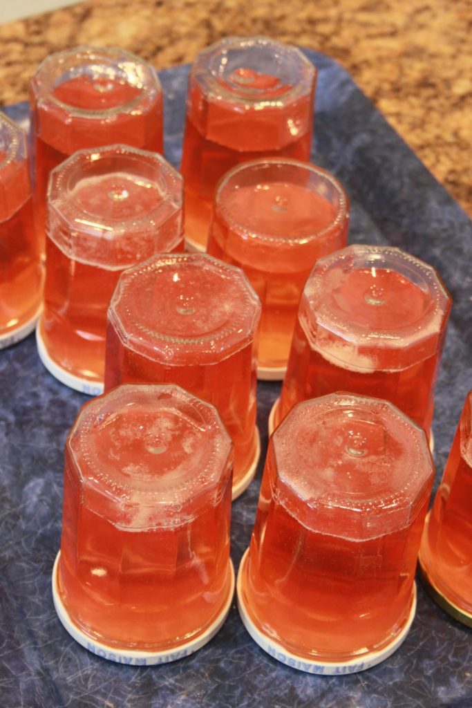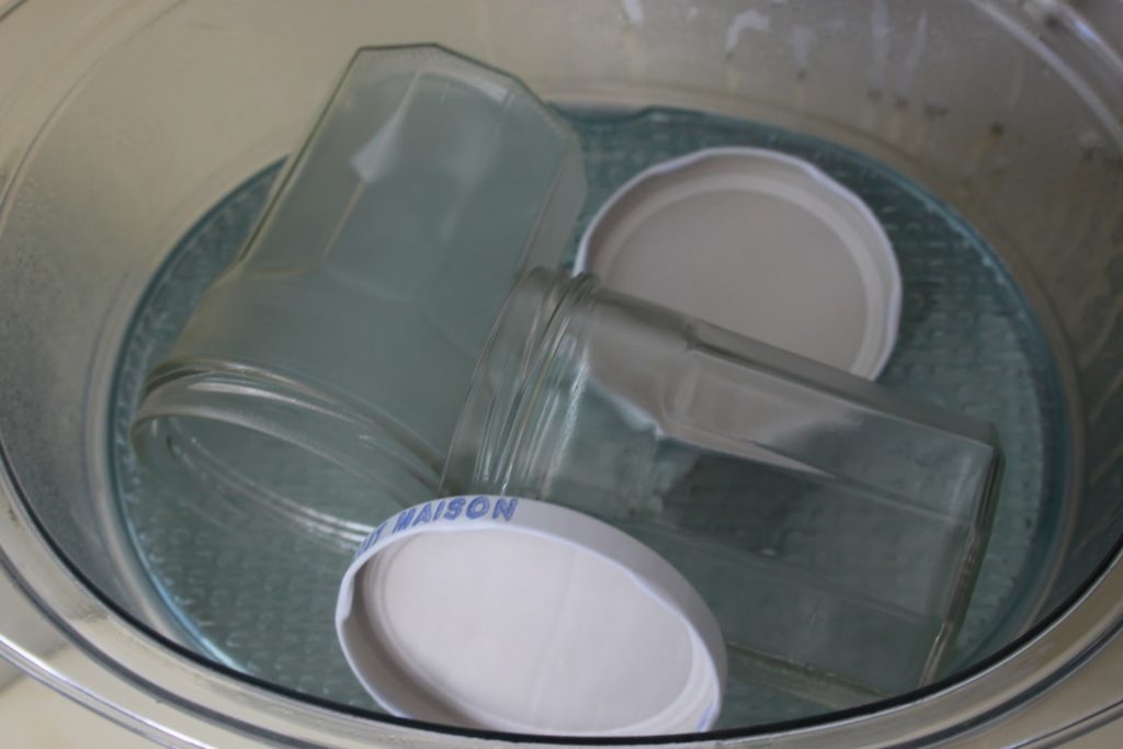 Quand la gelée est bientôt prête, stériliser à la vapeur pendant 5-10 minutes les pots et couvercles.