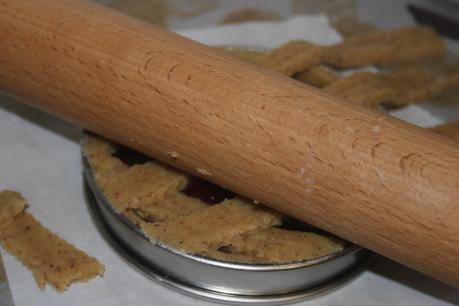 - Pour réaliser une Linzertorte plus classique, il suffit de foncer un autre cercle (il y a assez de pâte pour en faire deux), puis de couper des bandes avec une roulette.